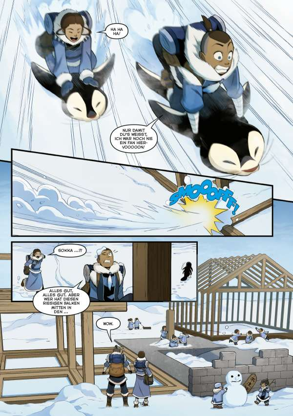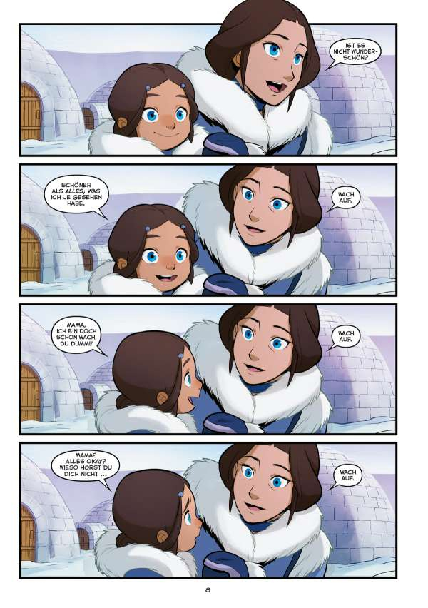 Als sich Aang aufmacht, um Zuko mit den Kemurikagen zu helfen, kehren Katara und Sokka zum Südlichen Wasserstamm alleine zurück. Katara ist schockiert darüber, dass ihr geliebtes Heimatdorf zu einer lebhaften Stadt geworden ist und kein anderer als ihr Vater Hakoda ist ihr Leiter. Die größten Veränderungen stammen von Malina, einem Mitglied des Nördlichen Wasserstamms, das versucht, den Norden und den Süden endlich wieder zu vereinen. Doch welche Absichten stecken wirklich dahinter?