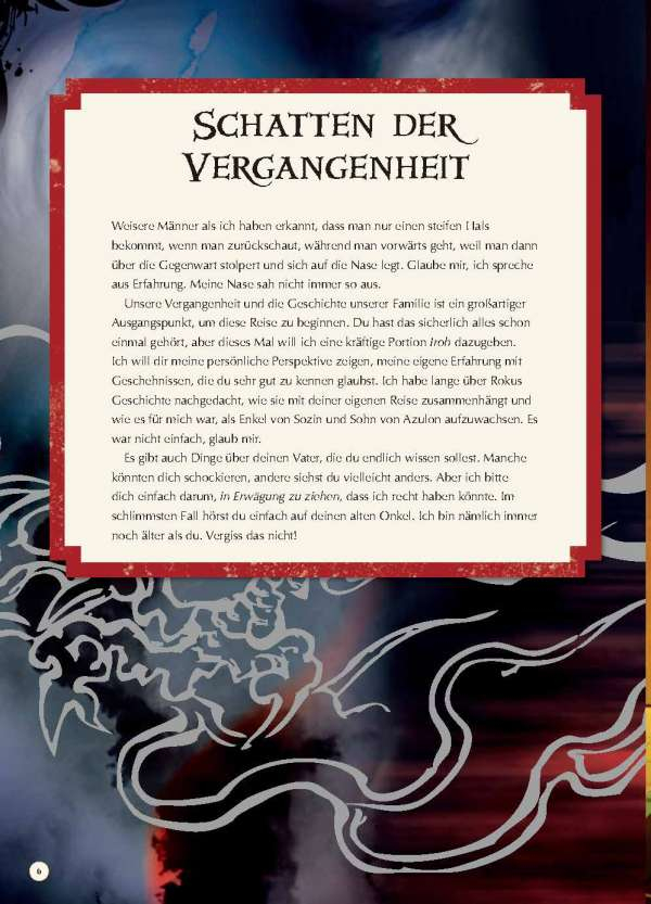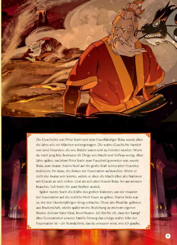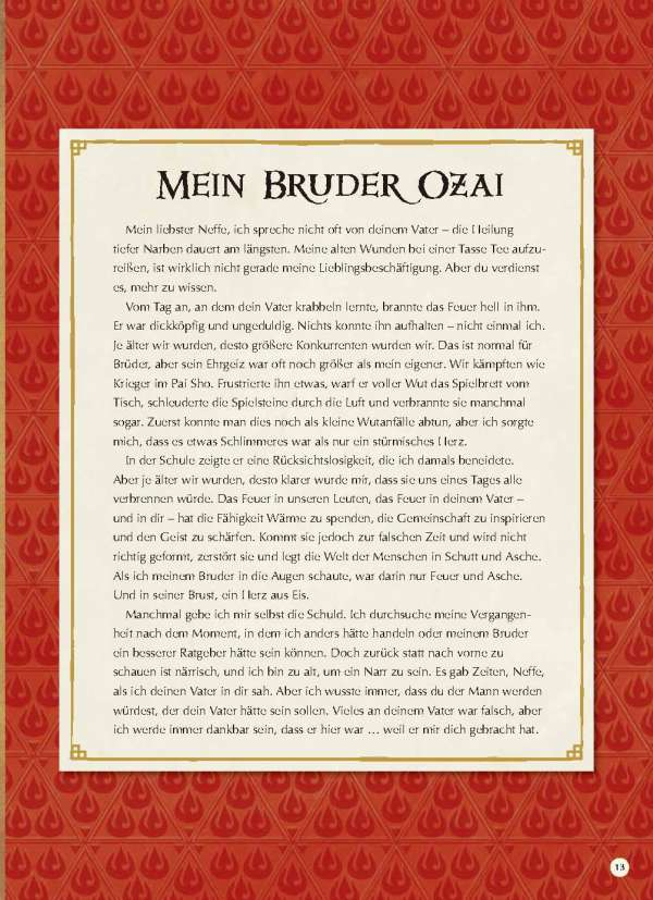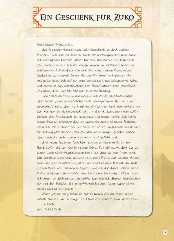 Iroh hatte in seinem Leben so einige Rollen inne: Kronprinz der Feuernation, Mentor von Prinz Zuko, Verbündeter von Avatar Aang und noch so viele mehr. Mit dem Ende des Hundertjährigen Krieges kann Iroh auf viele Gedanken, Erinnerungen, Andenken und Geschichten zurückblicken, die er nun in Zeiten des Friedens zusammenträgt, um sie mit Prinz Zuko zu teilen. Lang gehütete Geheimnisse warten nur darauf, entdeckt zu werden, während Onkel Iroh die Geschichte der Feuernation für Prinz Zuko aufzeichnet. Ob Briefe von der Familie und Freunde oder viele wertvolle Erinnerungsstücke zum Herausnehmen – DAS VERMÄCHTNIS DER FEURNATION präsentiert einen exklusiven Einblick in die Welt eines der beliebtesten Charaktere aus der Serie AVATAR – HERR DER ELEMENTE.