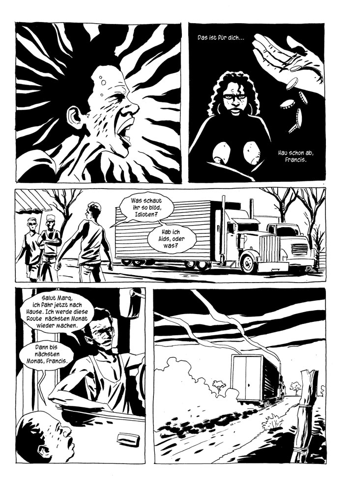 Aids Highway– die ebenso nüchterne, wie erschreckende Geschichte schildert die Ausbreitung einer der schlimmsten Seuchen, die den afrikanischen Kontinent heimgesucht hat.