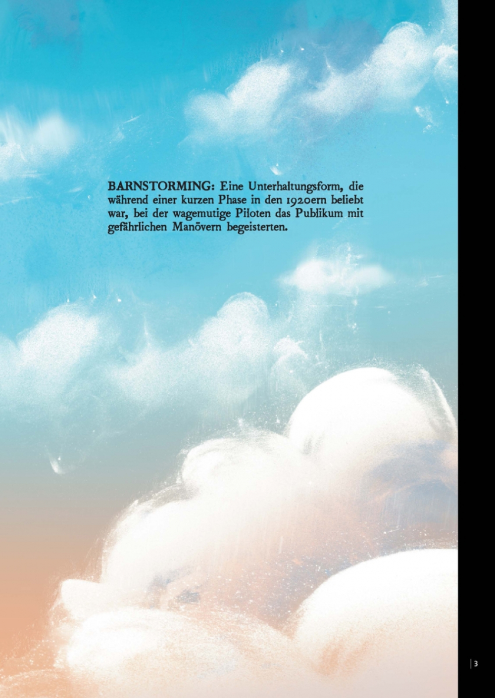 Ihre Ära war kurz, aber ihr Wagemut bleibt legendär: Die »Barnstormers« waren furchtlose Piloten der Nachkriegszeit, die für Applaus, Nervenkitzel und die Hoffnung auf mickrige Gagen ihren Hals bei irrwitzigen Kunstflugmanövern riskierten. Hawk E. Baron ist einer von ihnen, aber sein großer Durchbruch als Barnstormer lässt auf sich warten. Bis er Tillie kennenlernt, eine junge Frau, die Hawks Abenteuerlust und seine Leidenschaft für die Fliegerei teilt. Ihre gemeinsamen Auftritte verschaffen ihnen schnell Ruhm und Geld – bis ihnen ein brutaler Mord angehängt wird. Tillie und Hawk werden zur Flucht gezwungen. Je brenzliger ihre Situation wird, desto näher kommen sie sich…