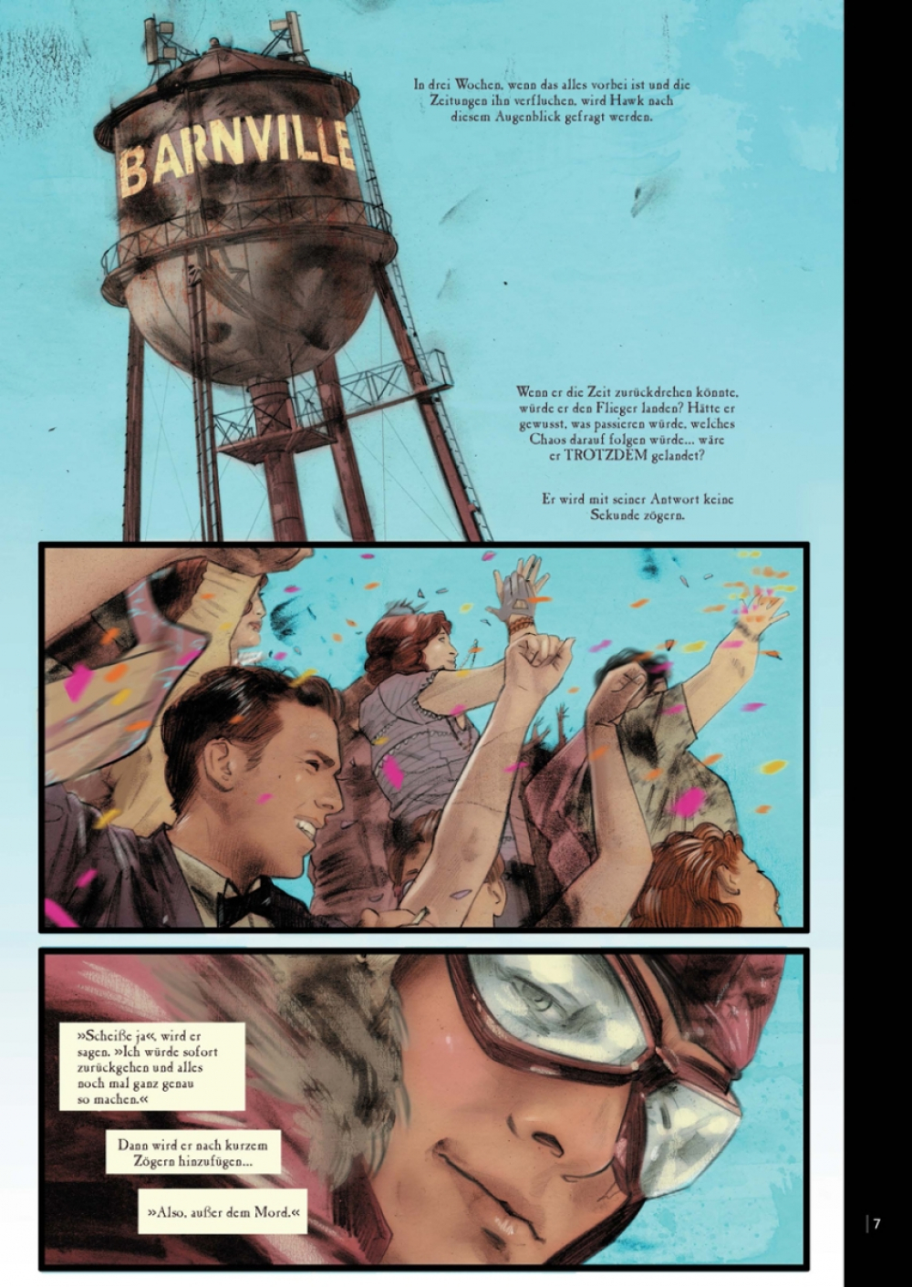 Ein schwindelerregendes, romantisches Abenteuer über den Wolken, das in Sachen knisternder Spannung der Ballade von Bonnie und Clyde in nichts nachsteht! »Barnstormers« stellt sowohl Scott Snyders Talent für mitreißende Erzählungen als auch die stimmungsvolle Zeichenkunst von Tula Lotay unter Beweis.
