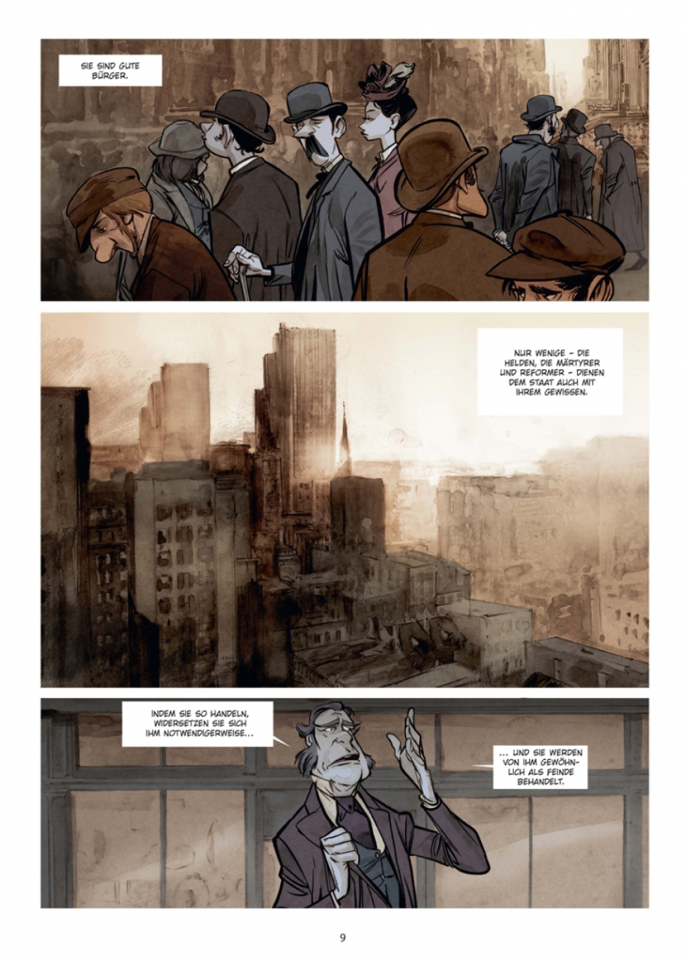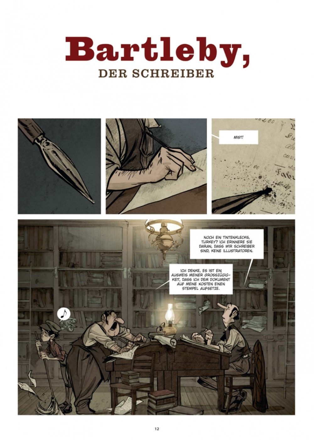 Der Soziologe Max Weber sah in der Bürokratie die beste aller Herrschaftsformen, denn sie sei effizient und egalitär, ohne auf direkte Gewaltanwendung zurückzugreifen. Mit seiner Kurzgeschichte »Bartleby der Schreiber« nahm Herman Melville seine Kritik an Webers Ansichten vorweg, indem er einen unscheinbaren Schreiberling zum unerträglichen Störfall für die bürokratische Maschine werden lässt. Held des Widerstands oder asozialer Sonderling? Zeichner José Luis Munuera (»Spirou und Fantasio«, »Zyklotrop«) beantwortet uns diese Frage nicht, aber er lässt sie uns durch seine pointierte Interpretation neu überdenken.