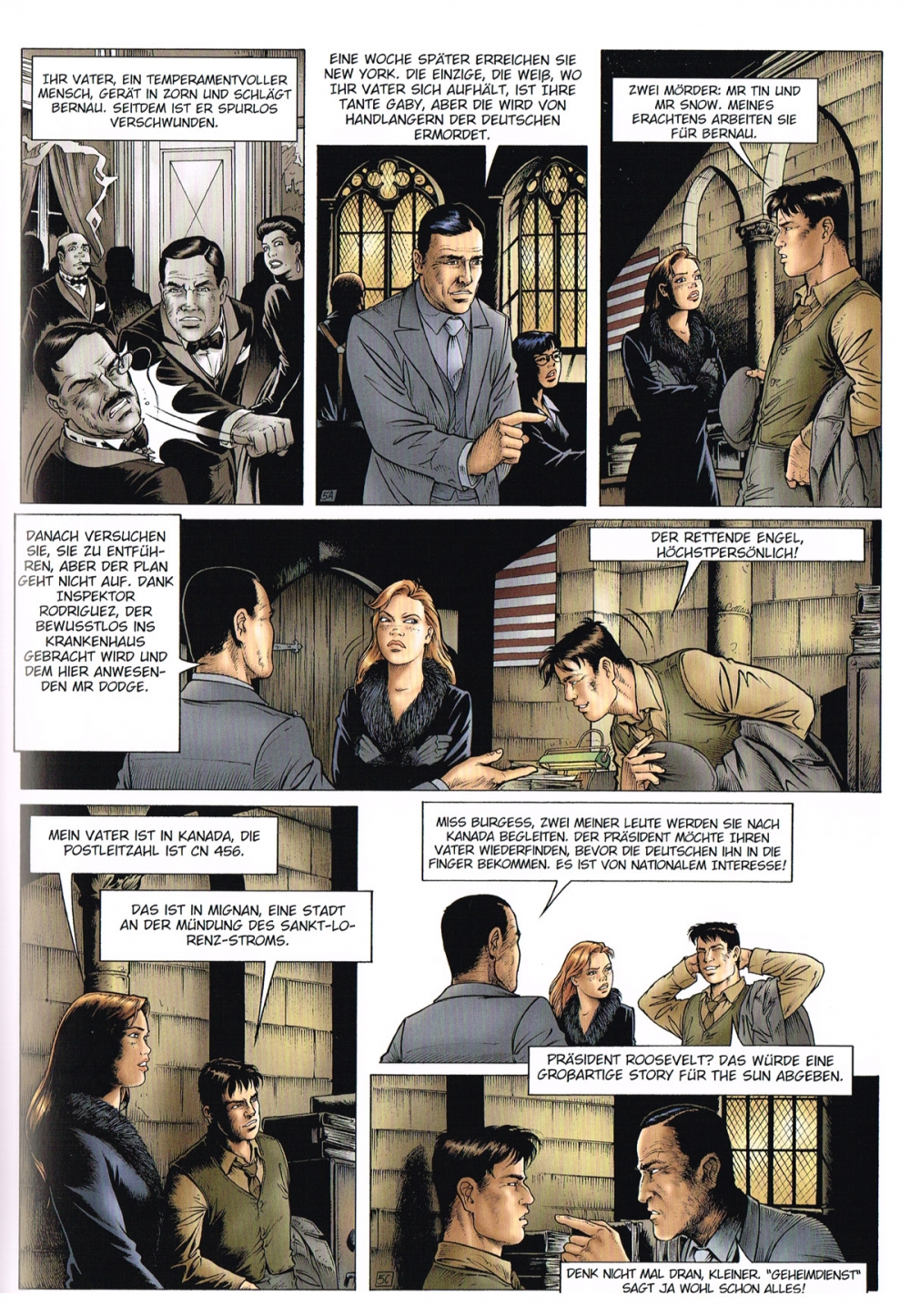1937-1938. Auf der Suche nach ihrem Vater, einem von Hitlers Spionen verfolgten Atomphysiker, macht sich die scḧone, junge englische Adelige Betty auf den Weg nach Amerika.Der amerikanische Draufg̈anger und Fotograf Dodge kommt ihr dabei zu Hilfe.Spionage, Action, Lovestory und das Aufeinanderprallen der Kulturen am Vorabend des Zweiten Weltkriegs - diese span- nende und geschichtsnahe Reihe ist ein Actionabenteuer in- mitten des Weltgeschehens.