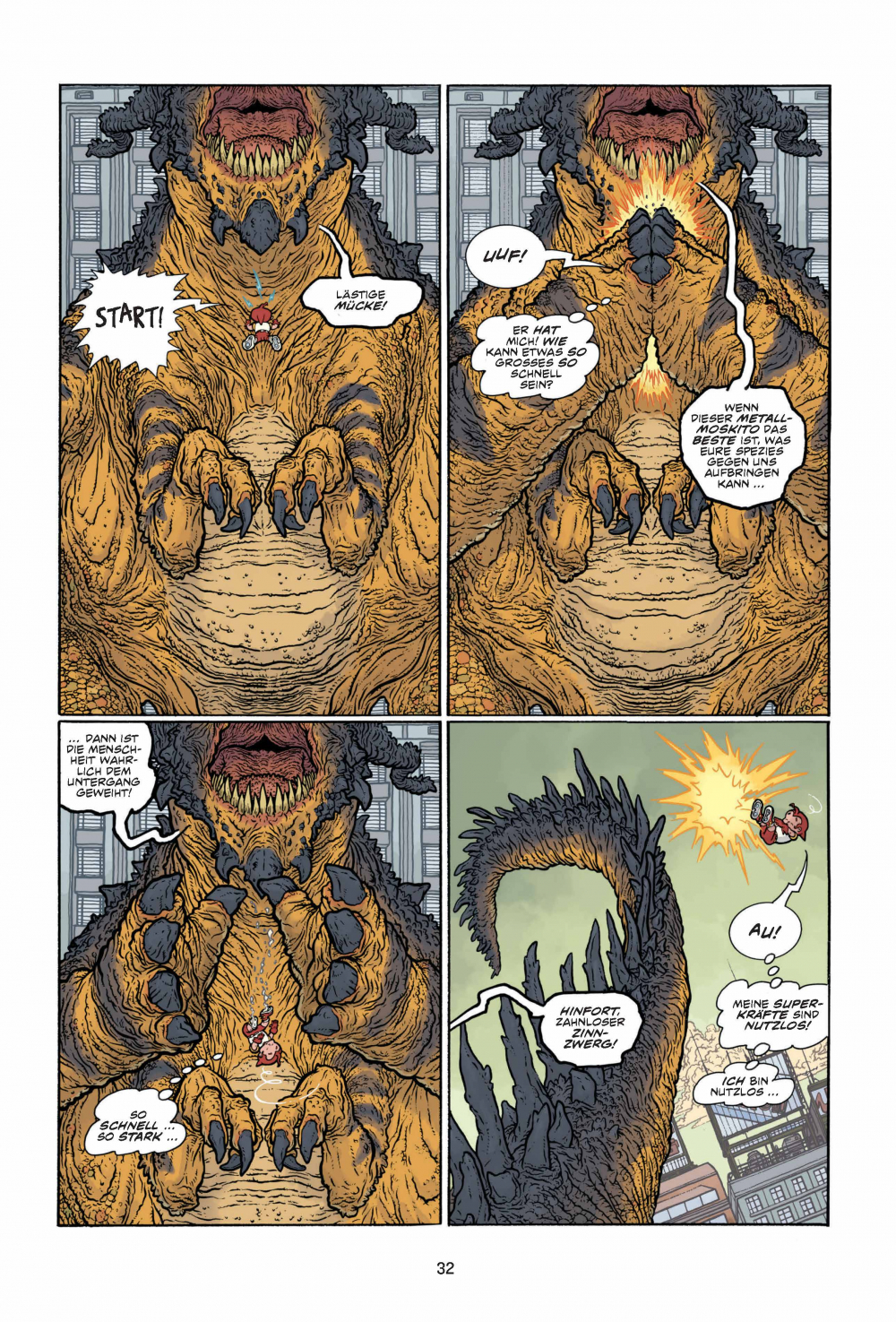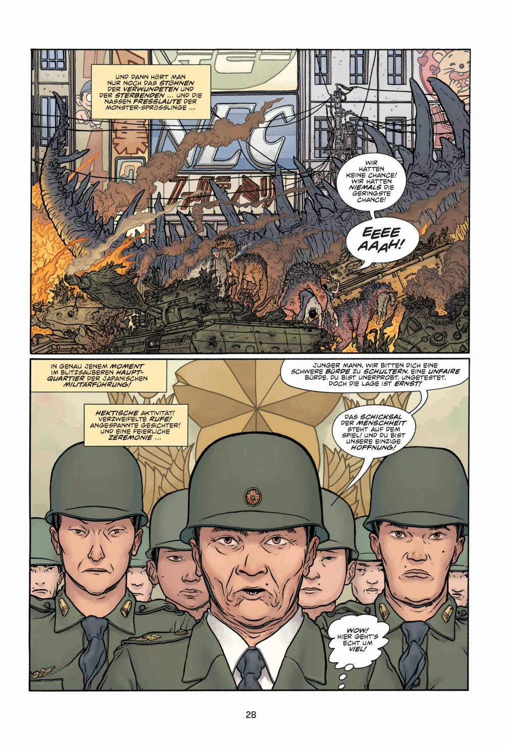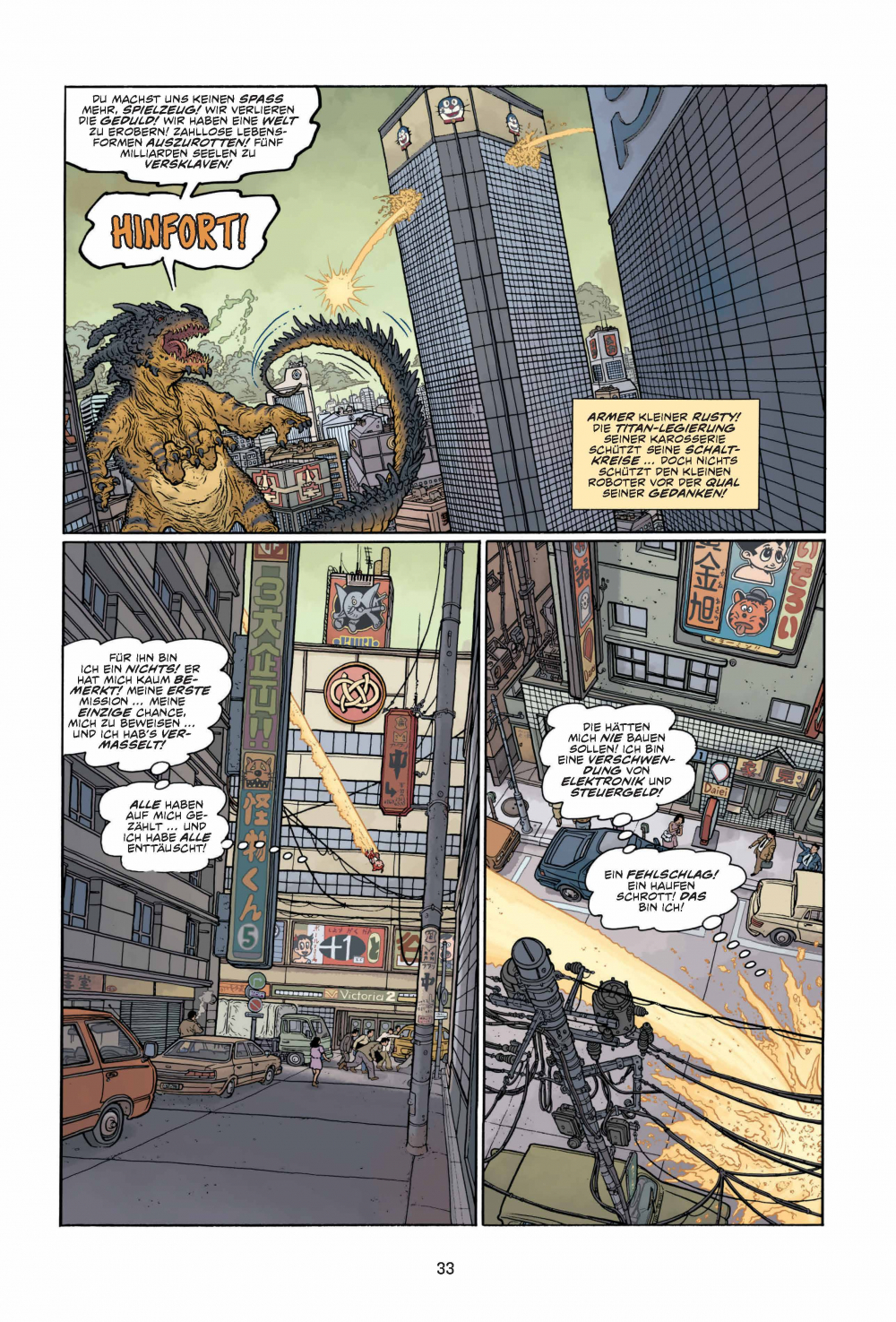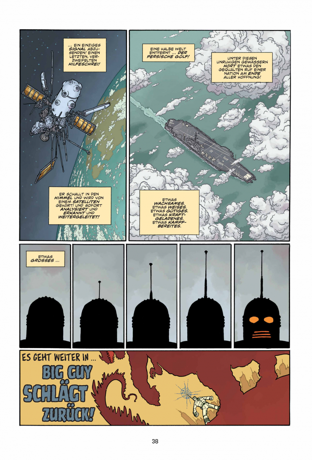 Achtung, Comic-Freunde, hier spielt die Musik! Hier kommen Action und Abenteuer, hier kommen THE BIG GUY AND RUSTY THE BOY ROBOT! Macht euch bereit für eine Achterbahnfahrt durch die Köpfe von Frank Miller und Geoff Darrow, jenen Comic-Titanen, die euch bereits mit HARD BOILED knallhart den Wahnsinn getrieben haben! Egal ob junger Wilder oder junggebliebener Monsterfilm-Freak: THE BIG GUY AND RUSTY THE BOY ROBOT bringt deine Schaltkreise zum Glühen und zeigt dir alles, was du immer in einem Comic sehen wolltest ... und zwar in GROSSAUFNAHME!