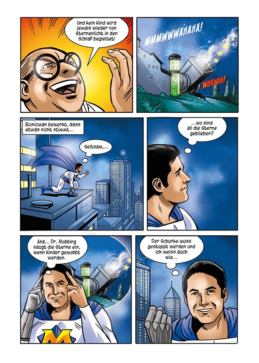 Mit «Bionicman» haben Autor Michel Fornasier und Zeichner David Boller eine Comic-Serie geschaffen, die Mut macht. Auch in diesem zweiten Band setzt sich der einhändige Superheld für Schwächere ein. Sein stärkster Muskel ist dabei sein Herz. Tauchen Sie ein in eine Welt voller Menschlichkeit, Action und Überraschungen.