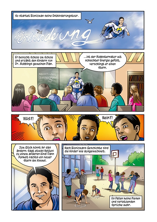 Michel Fornasier ist ohne rechte Hand zur Welt gekommen. Heute wirft er seinen blauen Umhang über und verwandelt sich in Bionicman. Er ist nicht länger ein Mensch mit körperlicher Einschränkung,sondern hat unbegrenzte Kräfte. Er kann fliegen und sogar die Zeit zurückdrehen. Als Superheld mit Handicap hat er eine wichtige Mission: Er stärkt das Selbstvertrauen von Kindern und Erwachsenen und bekämpft sämtliche Facetten von Mobbing. Denn eine vermeintliche Schwäche kann zu einer Stärke werden.