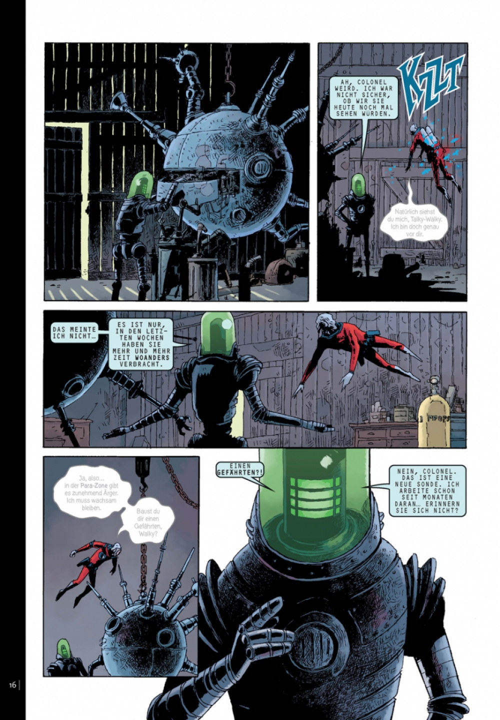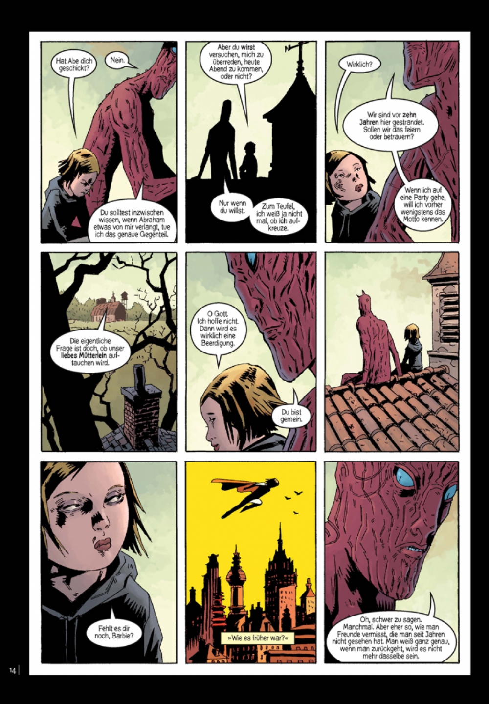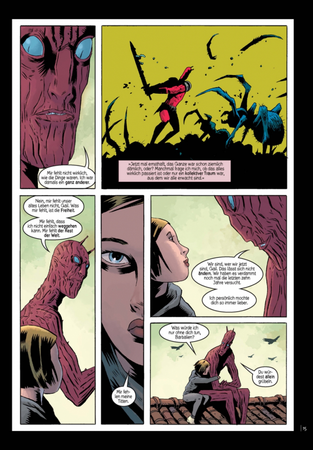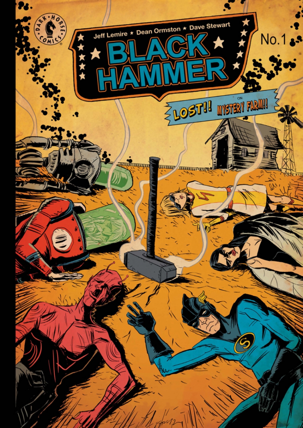 Jeff Lemire, der kanadische Spezialist für ausgefallene Stories mit Tiefgang (Descender, Der Unterwasser-Schweißer, Essex County), erschafft mit "Black Hammer" eine Hommage an die großen Superhelden der Comicgeschichte, bei der die Liebe zum Genre aus jeder Seite strahlt. Und gleichzeitig ist die Serie ein Abgesang auf die Naivität moderner Superhelden, der ohne die bekannten Klischees von moralisch zerrissenen Antihelden und Rächern wider Willen auskommt. Die Zeichnungen von Dean Ormston, der mit Neil Gaiman an "Sandman" gearbeitet hat und dessen Spin-Off "Lucifer" zeichnet, wirken gleichermaßen vertraut und fremdartig und reflektieren die innere Spannung von Lemires Vision perfekt.