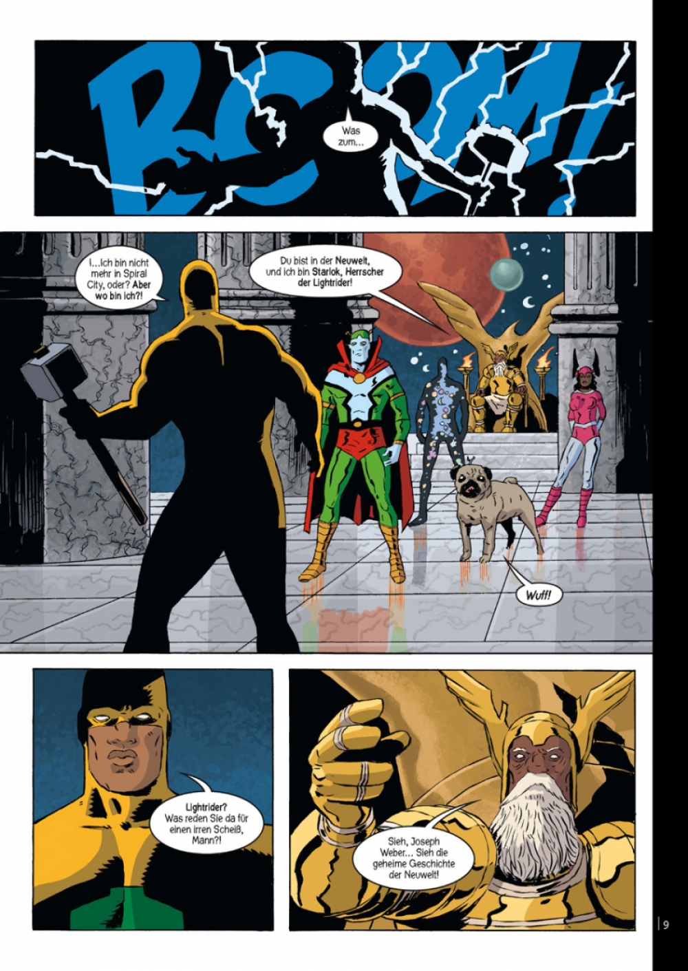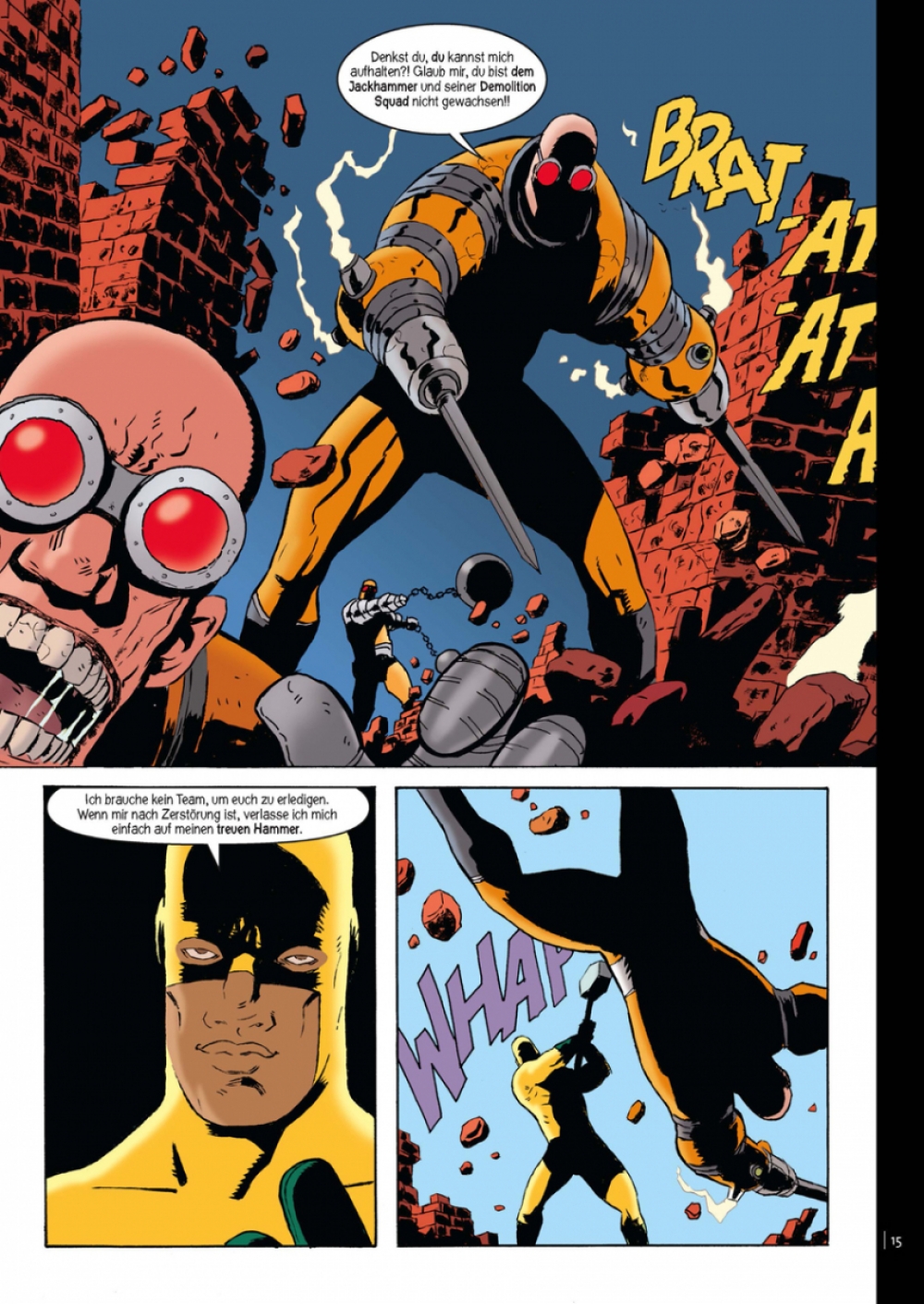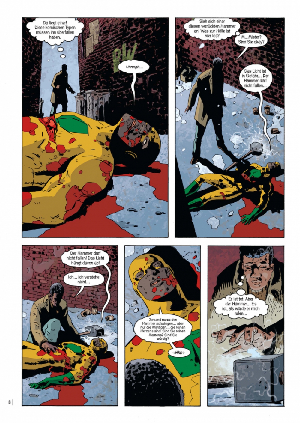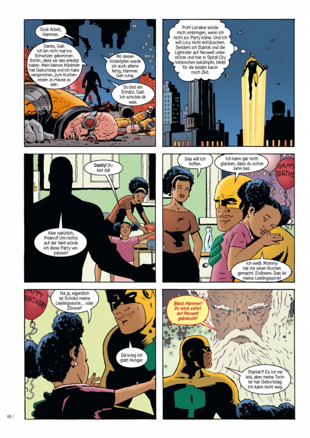 Jeff Lemire, der kanadische Spezialist für ausgefallene Stories mit Tiefgang (Descender, Der Unterwasser-Schweißer, Essex County), erschafft mit "Black Hammer" eine Hommage an die großen Superhelden der Comicgeschichte, bei der die Liebe zum Genre aus jeder Seite strahlt. Und gleichzeitig ist die Serie ein Abgesang auf die Naivität moderner Superhelden, der ohne die bekannten Klischees von moralisch zerrissenen Antihelden und Rächern wider Willen auskommt. Die Zeichnungen von Dean Ormston, der mit Neil Gaiman an "Sandman" gearbeitet hat und dessen Spin-Off "Lucifer" zeichnet, wirken gleichermaßen vertraut und fremdartig und reflektieren die innere Spannung von Lemires Vision perfekt.
