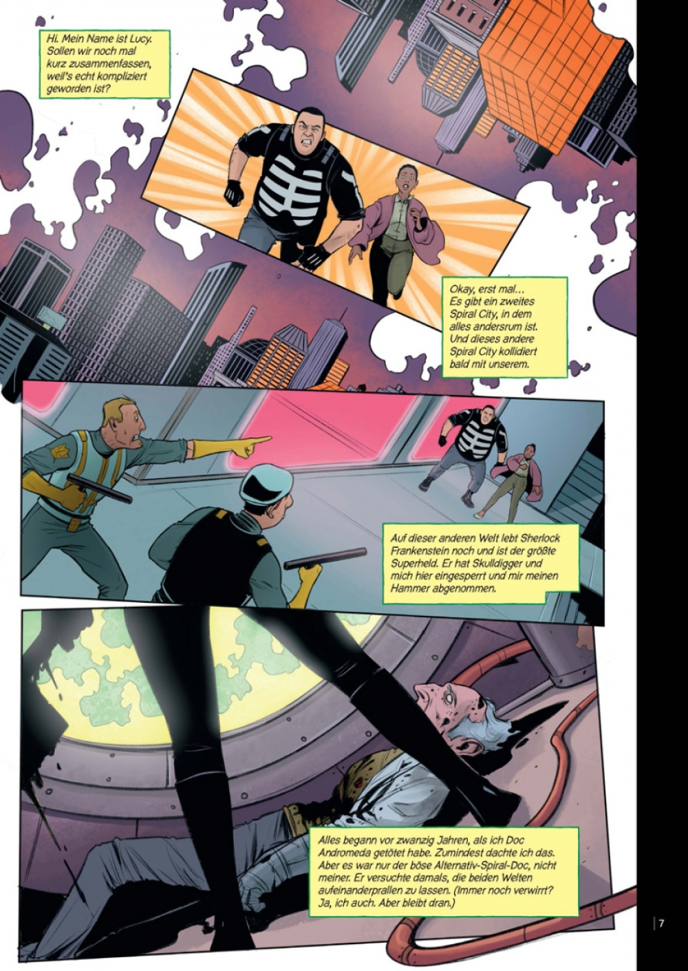 Alles steht Kopf in der Welt von Black Hammer! Erst kollidiert Spiral City mit einer Parallelwelt-Version seiner selbst, wodurch ein komplett neues Multiversum entsteht, und jetzt nimmt Lucy Weber den Hammer ihres Vaters wieder zur Hand, um gemeinsam mit Skulldigger nach einer Lösung für das katastrophale Chaos zu suchen.