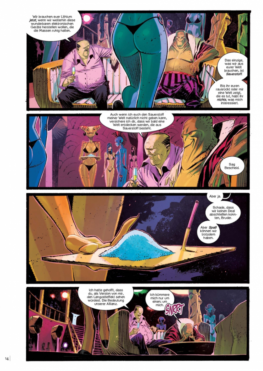 Autor Rick Remender (»Low«, »The Last Days of American Crime«) präsentiert, zusammen mit dem Künstlerduo auf Superstar-Niveau Matteo Scalera (»Secret Avengers«, »Dead Body Road«) und Moreno Dinisio, mit »Black Science« ein überwältigendes Science-Fiction-Epos, das vor grenzenloser Vorstellungskraft, unerschöpflichem Grauen und endlosen Entdeckungen nur so strotzt.