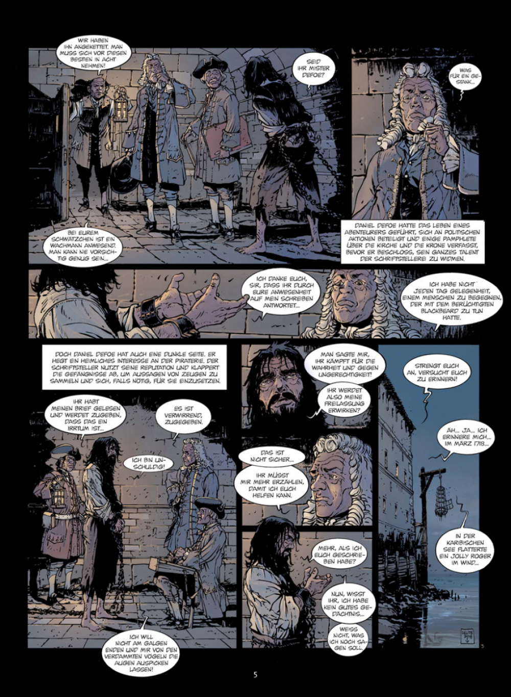 Zu Beginn des 18. Jahrhunderts zieht der bekannte Schriftsteller Daniel Defoe durch die Gefängnisse Englands, um Gespräche mit den Insassen zu führen, denn die Piraten und Freibeuter sind wertvolle Quellen für Abenteuergeschichten von den Sieben Meeren. Doch der Mann, den Defoe im Dezember 1721 trifft, ist ein besonderer Fall, denn er beteuert eisern seine Unschuld, obwohl er zugibt, ein Komplize des schrecklichsten aller Piratenkapitäne gewesen zu sein: Edward Teach, bekannt als Blackbeard. Seine Geschichte ist schier unglaublich, aber ist irgendetwas davon wahr?