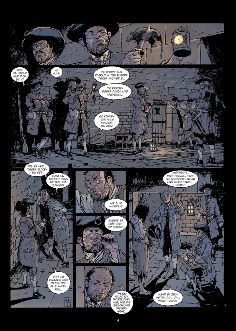 Zu Beginn des 18. Jahrhunderts zieht der bekannte Schriftsteller Daniel Defoe durch die Gefängnisse Englands, um Gespräche mit den Insassen zu führen, denn die Piraten und Freibeuter sind wertvolle Quellen für Abenteuergeschichten von den Sieben Meeren. Doch der Mann, den Defoe im Dezember 1721 trifft, ist ein besonderer Fall, denn er beteuert eisern seine Unschuld, obwohl er zugibt, ein Komplize des schrecklichsten aller Piratenkapitäne gewesen zu sein: Edward Teach, bekannt als Blackbeard. Seine Geschichte ist schier unglaublich, aber ist irgendetwas davon wahr?