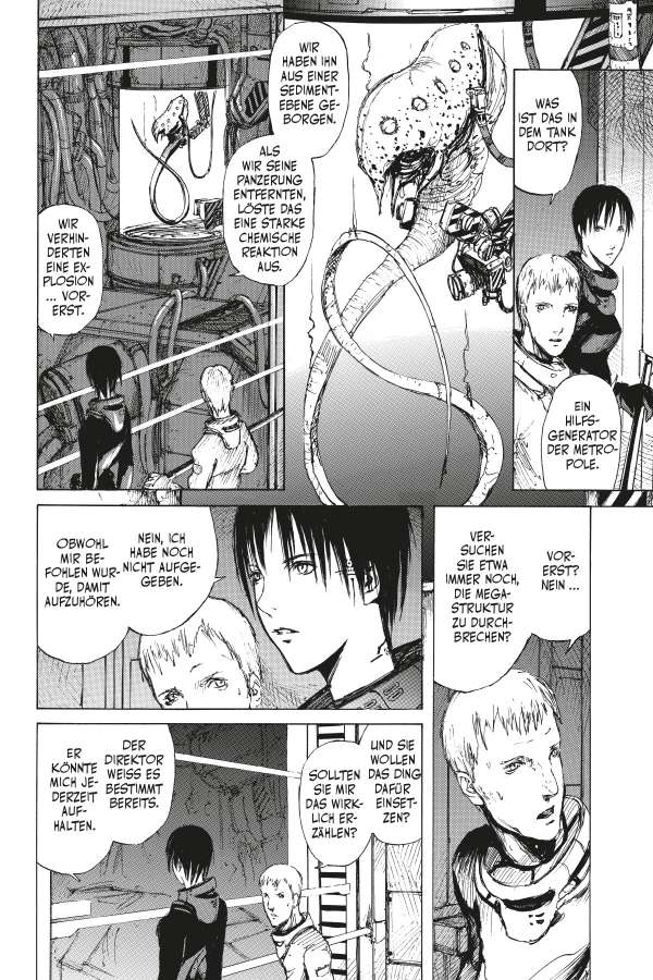 Im zweiten Band der Cyberpunk-Saga findet Killy in der mysteriösen Cibo eine Verbündete auf seiner Suche nach den Netzwerkgenen. Nur diese seltenen Gene können das chaotische Wachstum der Megastruktur eindämmen. Als sich die beiden dem Gelände der Tôa-Schwerindustrie nähern, werden sie von einer Gruppe Menschen angegriffen. Gerade noch rechtzeitig entwickelt Killy eine neue Fähigkeit, die ihm hilft, den Angriff zu überleben ...
