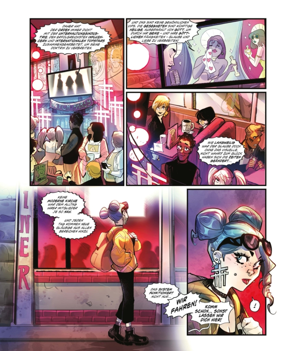 Und Cleila, die Queen of Pop, ist die Berühmteste unter ihnen. Aber ihr Thron gerät ins Wanken: Charismatische Newcomer und ihre mentale Gesundheit machen ihr zu schaffen. Und dann ist da das uralte, dämonische Geheimnis, das sie mit ihrem Agenten, Vater Lev, teilt. Nicht nur im Krieg und in der Liebe, auch im Showbusiness ist alles erlaubt. Und in der Schlacht um den himmlischen Pop-Thron ist Lev absolut nichts heilig.