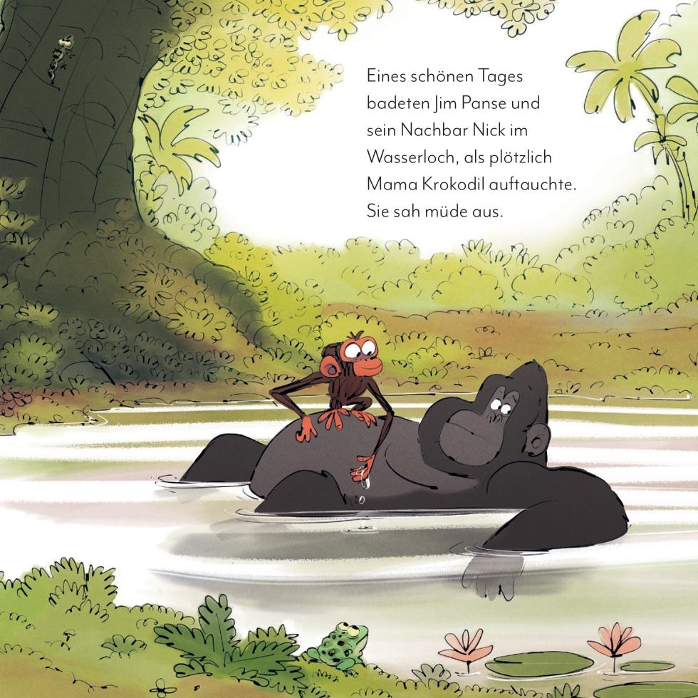 Es ist ein herrlicher Tag! Aber Mama Krokodil ist schrecklich müde, denn ihre Kinder wollen die ganze Zeit spielen und planschen. Jim bietet seine Hilfe an und springt als Mama für den Tag ein. Wie schwer kann das schon sein?