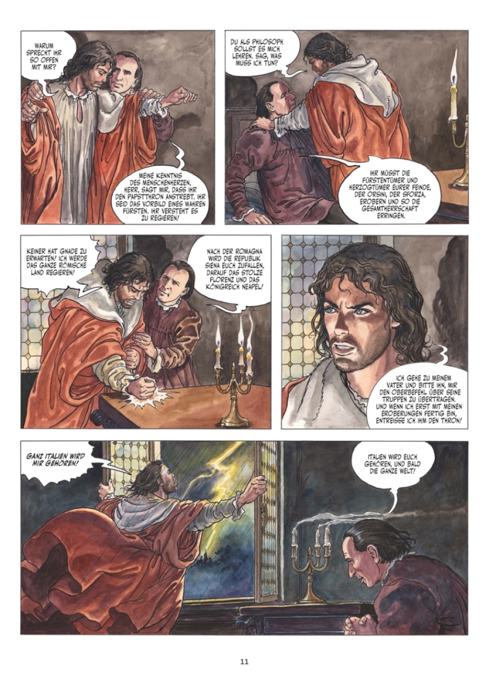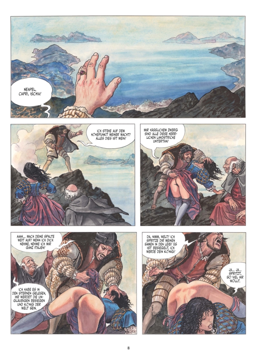 Gewalt und Wollust, Intrigen und Verschwörungen bilden den Rahmen dieses historischen Comic-Epos, das von Alejandro Jodorowsky in fieberhaftem Stil erzählt und von Milo Manara verführerisch opulent illustriert wird.