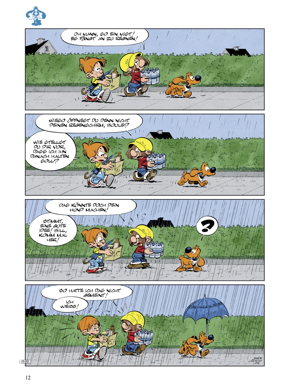 Der beliebteste Kindercomic Frankreichs geht in die Fortsetzung! Boule, ein fröhlicher, schelmischer kleiner Junge, der nicht sehr fleißig, aber extrem schlau ist und Bill, ein frecher Cockerspaniel der auch liebenswert, urkomisch, verlogen, manchmal badeunwillig, aber stets mit einem großen Herzen unterwegs ist. Zwischen Boule & Bill gibt es eine viele Geschichten über Freundschaft, Dummheiten, unglaubliche Abenteuer und vor allem über Zusammengehörigkeit.