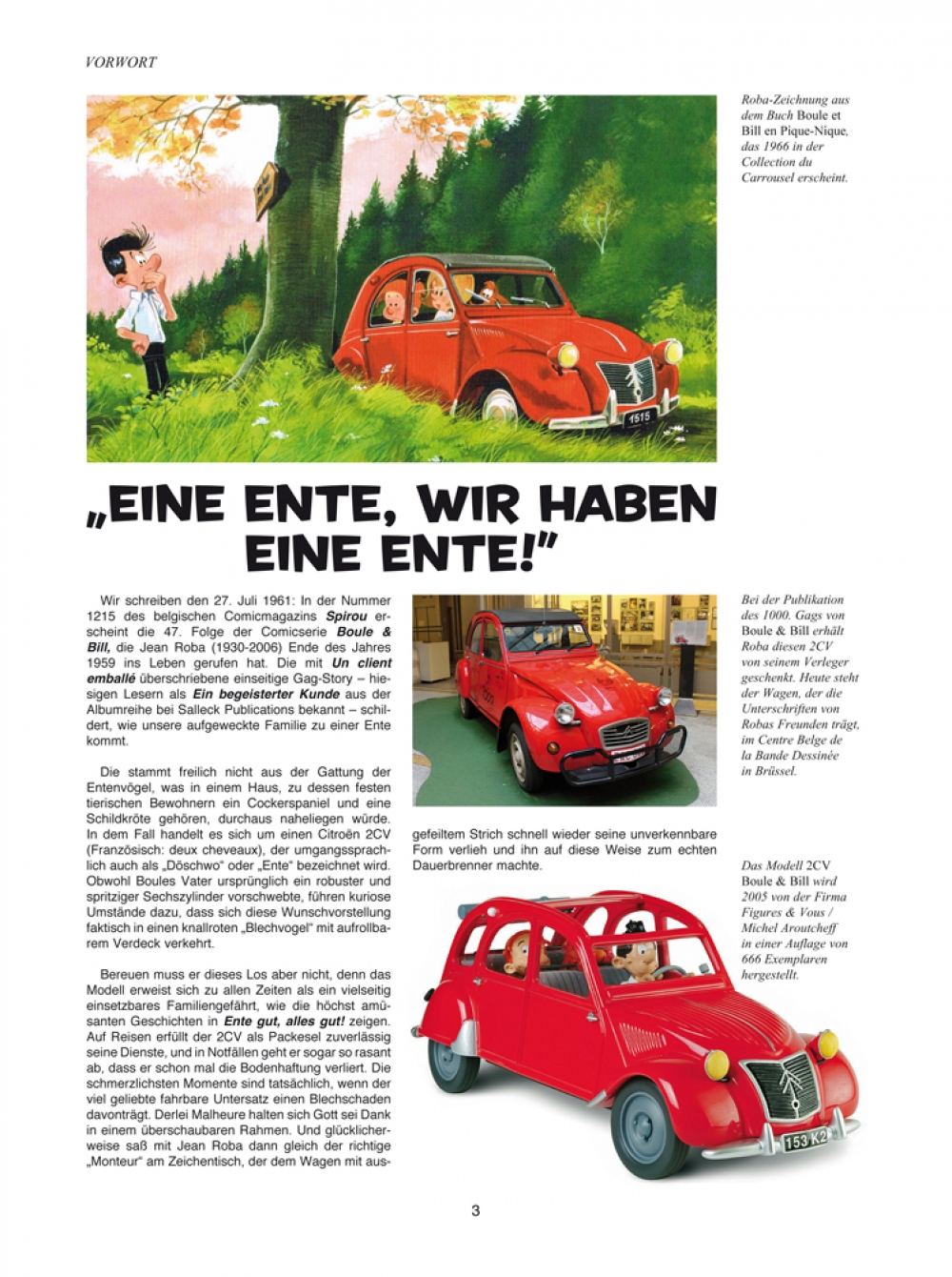 Dieser Sonderband enthält fast alle Comicseiten, die die beiden Künstler Jean Roba und Laurent Verron für die Serie Boule und Bill mit dem Familienauto - einem 2CV - gestaltet haben.