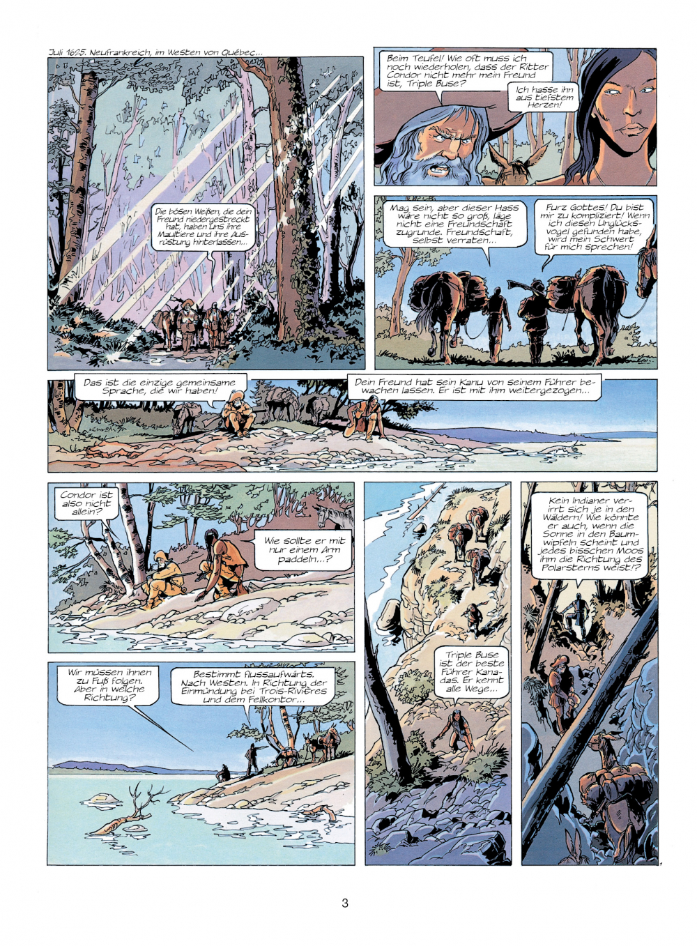 Nach dem dramatischen Tod des Sperbers begibt sich Germain Grandpin auf der Suche nach dem Ritter Condor in die dunklen Wälder Neufrankreichs. Und in der Weite dieses eisigen Landes spielen sich die Ereignisse ab, die das Schicksal der Figuren aus dem Zyklus der sieben Leben beschleunigen werden….
