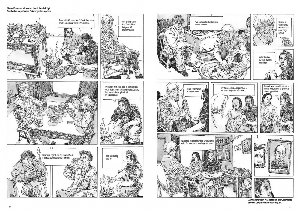 Wie können wir unsere Menschlichkeit angesichts von extremem politischem Fanatismus bewahren? Fish Wu erzählt eine Geschichte des Durchhaltens und Überlebens, die sich über drei Generationen seiner Familie und drei Länder erstreckt, nachdem er seine Großmutter, eine ältere Frau aus einer aus einer kleinen Stadt in China, ausführlich zu ihrer Lebensgeschichte befragt hat. Die Großmutter bringt uns mit ihren nebligen Erinnerungen zurück in die 1950er Jahre. Ihr Vater, der mit seinem Bruder an einer Privatschule im Dorf unterrichtete, wurde kritisiert und beschimpft, weil er Intellektueller war und sich weigerte, der Landreformbewegung beizutreten. Der Besitz der Familie wurde daraufhin beschlagnahmt und zerstört. Schließlich waren die Brüder gezwungen, eine endgültige Entscheidung zu treffen. Einer beschloss zu bleiben, der andere entschied sich, heimlich nach Taiwan auszuwandern. Erst als das Kriegsrecht in Taiwan aufgehoben wurde, brachte ein Brief aus Taipeh die Familie wieder zusammen. Durch sein meisterhaftes zeichnerisches Talent hat Fish Wu sorgfältig und behutsam die Schicksale dreier Generationen einer chinesischen Familie dokumentiert. Getrennt zwischen China und Taiwan, wurde die Familie davon Zeuge, wie sich Schicksal und Geschichte wiederholten. Fisch Wu Geboren in einer kleinen Stadt am Gelben Meer in China, studierte und arbeitete er 15 Jahre lang in Nanjing. Im Selbstverlag veröffentlichte er mehrere Comics und lebt derzeit in Seoul, Korea.