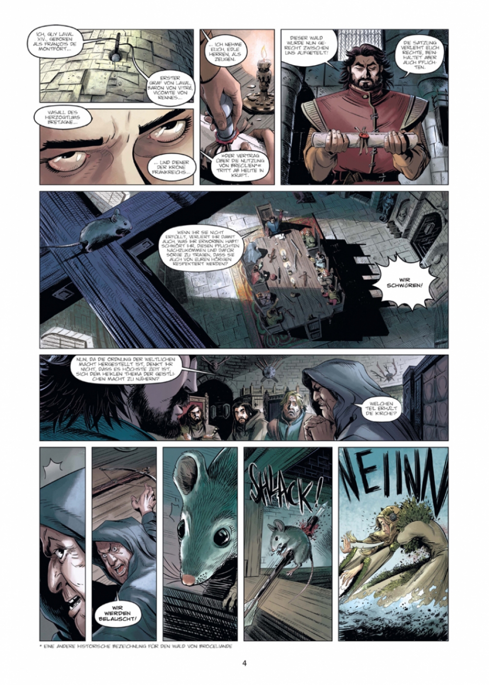 Brocéliande, ein mythischer Wald in der Bretagne, ist Schauplatz vieler Sagen rund um König Arthus und seine Tafelrunde. Außerdem ist er die Heimat einer Vielzahl märchenhafter Wesen, die die Protagonistinnen und Protagonisten dieser Reihe von fantasievollen Comics sind. Das Schloss von Comper liegt an der Grenze zwischen den Welten der Menschen und des kleinen Volkes. Um den Bau einer Brücke zu verhindern, ersetzt der Wächter des Waldes den Schlossherrn durch einen Doppelgänger. Doch dieser Betrug bleibt nicht lange unbemerkt...