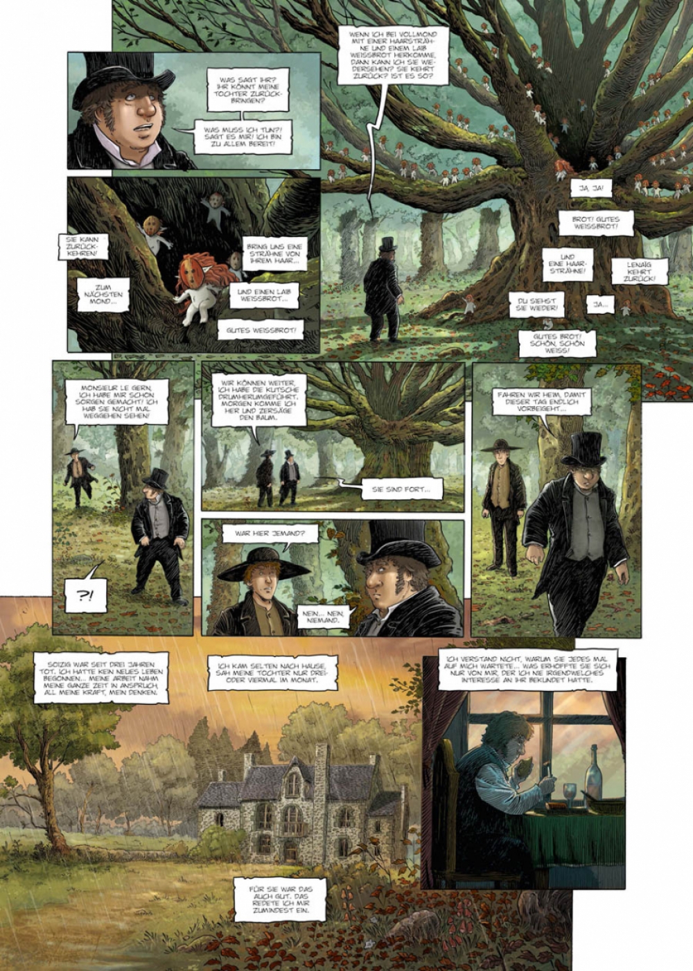 Ivon war nicht da, als seine Tochter starb. Auf dem Weg nach Hause stößt er auf Waldgeister, die ihm eine Möglichkeit anbieten, die Verstorbene wiederzusehen. Sie verabreden sich mit ihm für den nächsten Vollmondabend an der Buche des Reisenden. Wenn er dann eine Locke des Mädchens und einen Laib Weißbrot dabei hat, erhält er von dieser Nacht an jedes Jahr einen Tag, an dem er um Verzeihung bitten und seine Tochter näher kennenlernen kann... Moderne Comic-Märchen voller Magie, Feen und Kobolde, die die alten Mythen und Legenden fortschreiben bis in unsere Zeit. »Broceliande« gibt dem Sehnsuchtsort Wald geheimnisvolle Tiefe, gespickt mit reichlich Action und Humor und präsentiert in zauberhaften Zeichnungen.