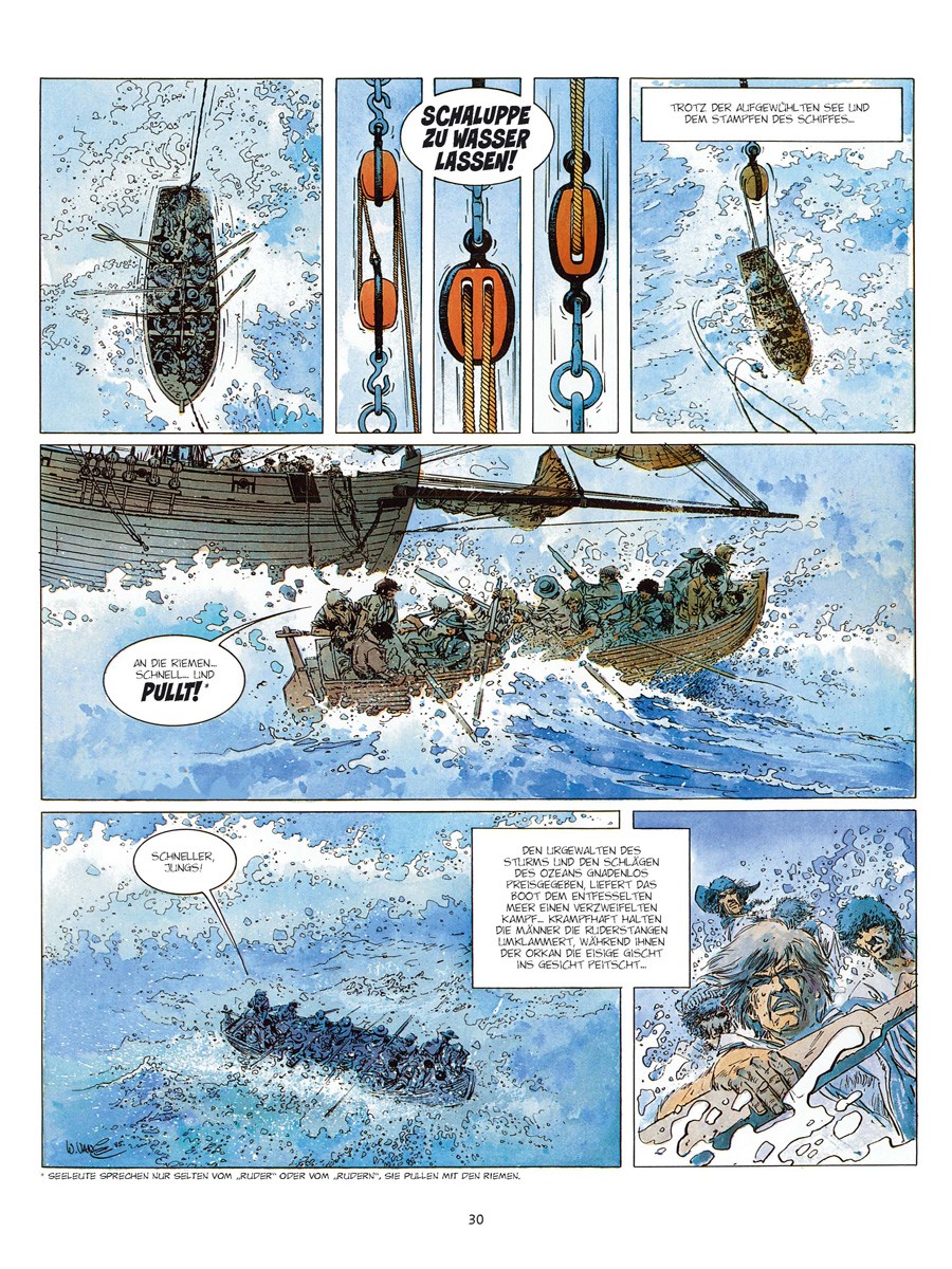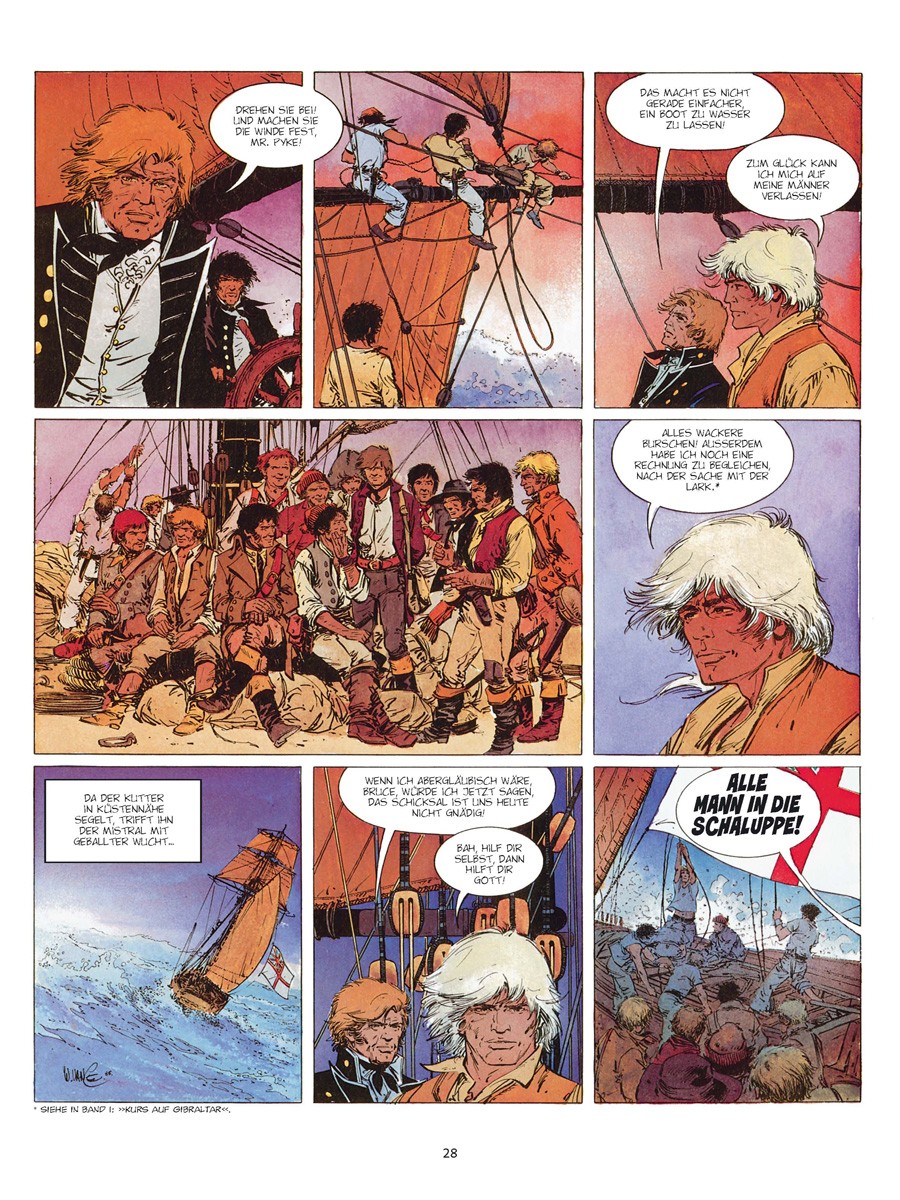 Das ist die Art von Seefahrer-Abenteuergeschichten, die Willam Van Cutsen (Vance) immer bevorzugte und so erfand er schon Mitte der 1970er Jahre den Charakter Bruce J. Hawker, der dann in den 80ern als eigenständige Albenreihe durchstarten sollte. Sein Comeback in diesem Genre war kein Zufall, denn Vance war schon immer Liebhaber der historischen Segelfahrt und seine Erfahrungen, die er mit der Seefahrergeschichte »Howard Flynn« gemacht hatte, flossen in dieses Projekt direkt mit ein.