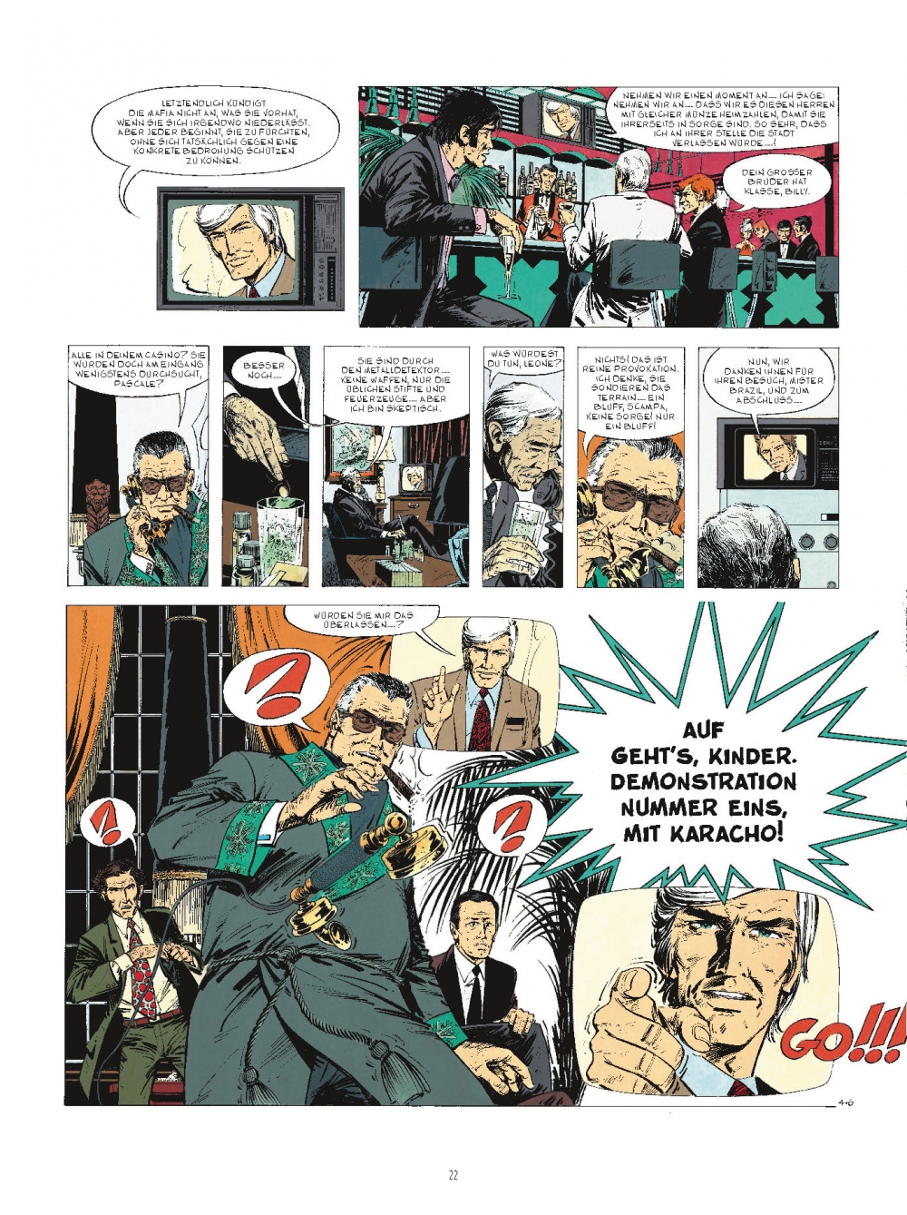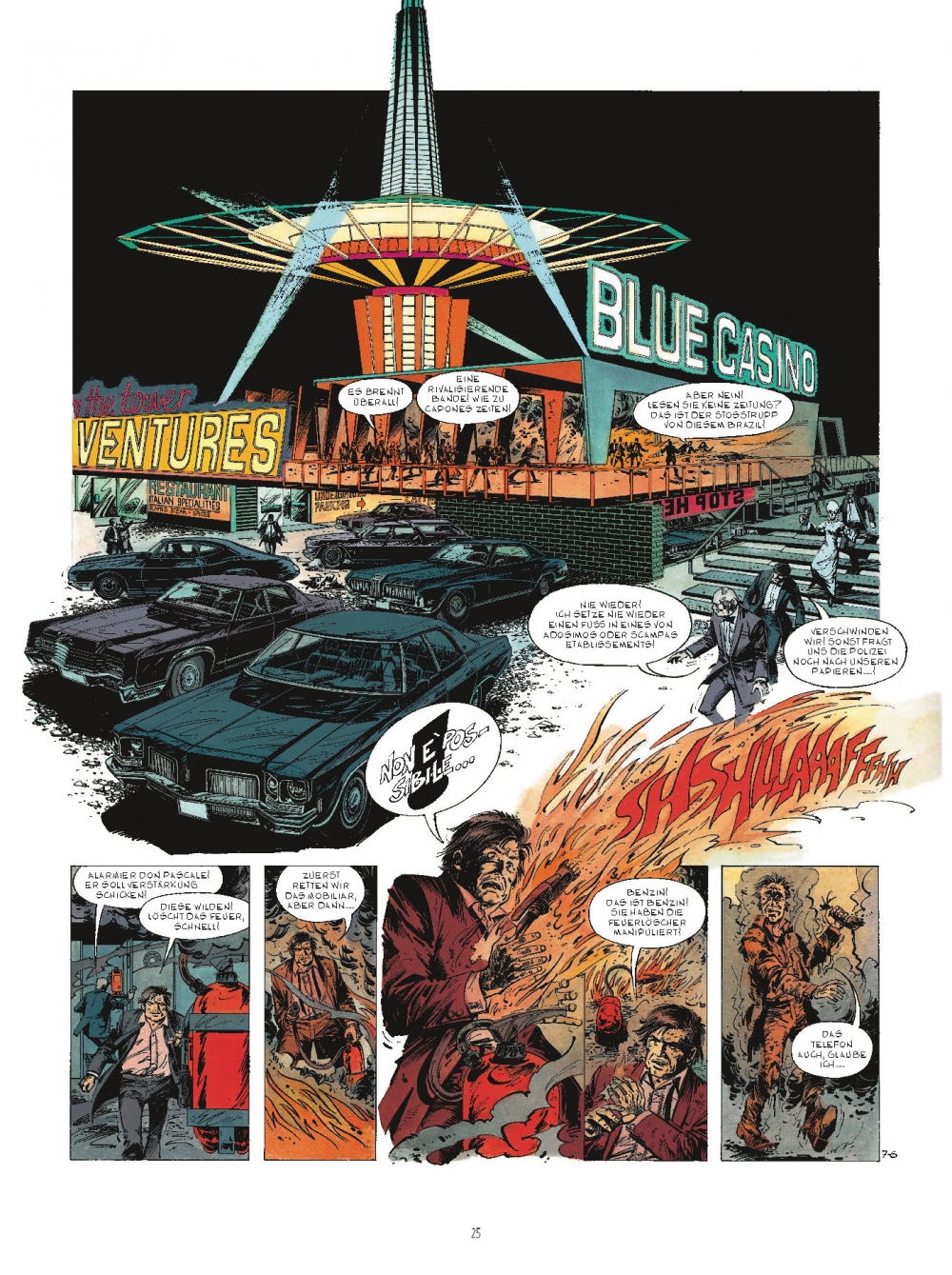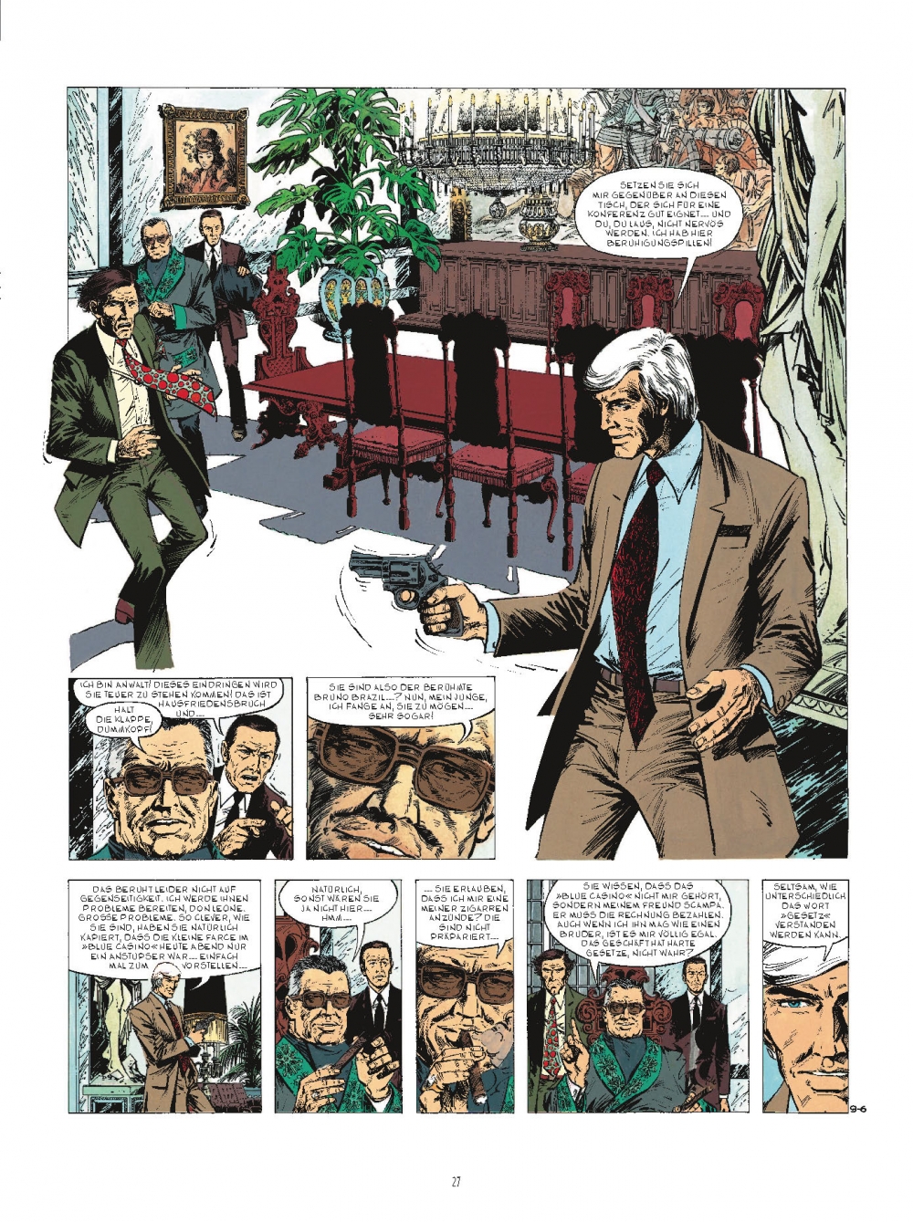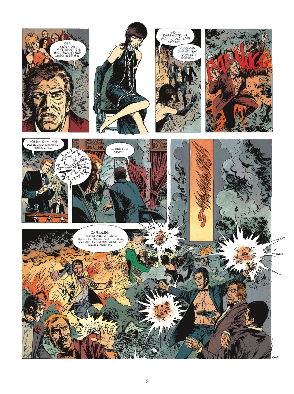 Mit dem aus den Abenteuern »Die Nacht der Schakale « und »Höllentanz in Sacramento« bestehenden Zweiteiler erreicht die Serie Bruno Brazil einen inhaltlichen und grafischen Höhepunkt.