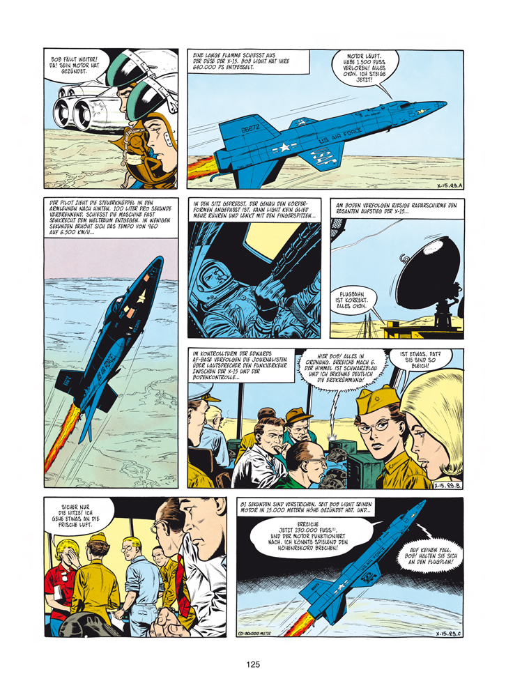 Buck Danny, Sonny Tuckson und Mike Tumbler jagen in diesem 9. Band der Buck-Danny-Gesamtausgabe Satellitendiebe, testen die superschnelle X-15 und bekommen es dann mit einem Störsender zu tun, der die von Cape Kennedy gestarteten Raketen vom Kurs abbringt.