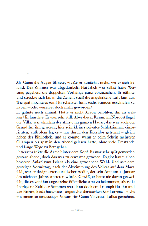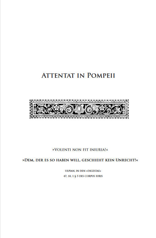 Sommer 51 v. Chr.: Aus dem Süden der Halbinsel kommt eine alarmierende Nachricht: Ein Verwalter der Volcatischen Güter in der Campania ist grausam ermordet worden. Unverzüglich bricht C.V.T. nach Pompeii auf, um den Hintergründen des Verbrechens nachzugehen. Schon in den ersten Tagen kommt es zu einer überraschenden und gefährlichen Wendung, und C.V.T. sieht sich als Gegenspieler eines geheimnisvollen Feindes, der skrupellos zu töten bereit ist...