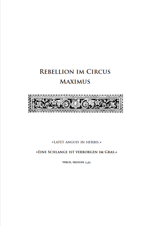 Rom, April 50 v. Chr.: Decius Vibellius, ein reicher römischer Bürger aus Capua, ist nach Rom gezogen, um seinem Sohn Aulus Zugang zu den politischen Ämtern zu verschaffen. Das kostet viel Geld, denn längst ist es Sitte, das Wahlvolk durch Spiele, Rennen und Gladiatorenkämpfe zu beeinflussen. So rüstet Vibellius bei einer Renngesellschaft eine Quadriga aus und kauft einen der besten Wagenlenker als Fahrer. Doch kurz vor dem Kampftag geschehen Dinge, die das Rennen in Frage stellen. C.V.T., seit Anfang des Jahres als Aedil mit der Aufsicht über Straßen, Plätze, Märkte und Spiele betraut, wird mit der Untersuchung des Falles betraut. Schon am zweiten Tag zeigt sich, daß es um mehr als Pferde geht...