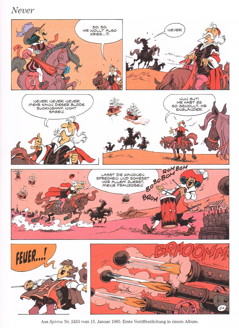 Anfang 1969 debütierte im Magazin Spirou eine Mantel-und-Degen-Serie der besonderen Art: Caline und Calebasse. Die dynamischen Zeichnungen stammen aus der spitzen Feder von Luc Mazel, die humorvollen Texte und ideenreichen Szenarien der Bände 1 und 2 zumeist aus dem riesigen Ideenschatz von Raoul Cauvin. Für die in diesem dritten und letzten Band der Caline und Calebasse-Gesamtausgabe abgedruckten Geschichten, die allesamt deutsche Erstveröffentlichungen sind, hat Mazel auch die Szenarien geschrieben.