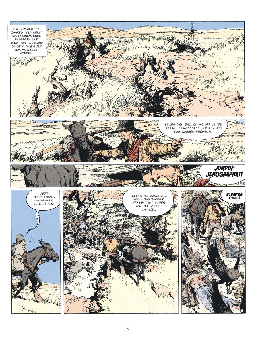 Endlich erscheint einer der großen Western-Klassiker in einer einheitlichen und definitiven Edition. Die zehnbändige Reihe »Jonathan Cartland«, die Michel Blanc-Dumont und Laurence Harlé zwischen 1974 und 1995 anfertigten, erzählt vom Leben eines Trappers, der als Kundschafter über die Weiten der Prärien zieht. Diese erscheint nun als Gesamtausgabe in drei opulenten Integral-Bänden.