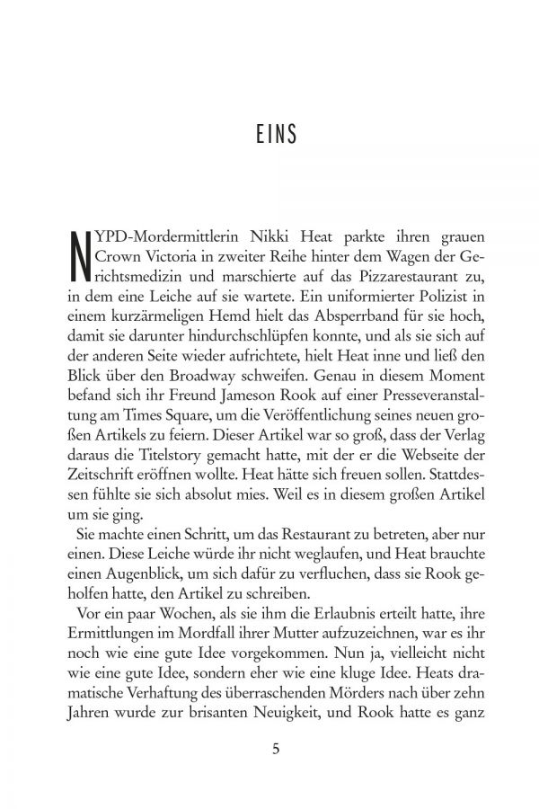 Fest entschlossen, für Gerechtigkeit zu sorgen, verfolgt NYPD-Mordermittlerin Nikki Heat auch weiterhin den flüchtigen ehemaligen CIA-Stationschef, der vor über zehn Jahre die Ermordung ihrer Mutter anordnete. Für diese Jagd tut sich Nikki einmal mehr mit ihrem Lebensgefährten, dem mit dem Pulitzer-Preis ausgezeichneten Enthüllungsjournalisten Jameson Rook, zusammen. Ihre Suche nach dem alten Spion und dem Motiv für den Jahre zurückliegenden Mord bringt einen beängstigenden Terrorplan ans Licht, der alles andere als Geschichte ist. Er ist tödlich. Er ist akut. Und die Endphase dieses Plans hat bereits begonnen.