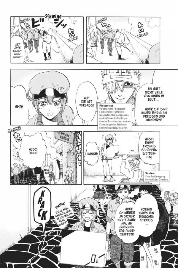 Das rote Blutkörperchen AE3803, bekannt für ihre Tollpatschigkeit und ihren schlechten Orientierungssinn, hat eine neue Aufgabe: Sie soll ein jüngeres rotes Blutkörperchen ausbilden! Wie soll das nur gut gehen? Da stürzt plötzlich eine gefährliche Verletzung den Alltag der Blutzellen unwiederbringlich ins Chaos …
