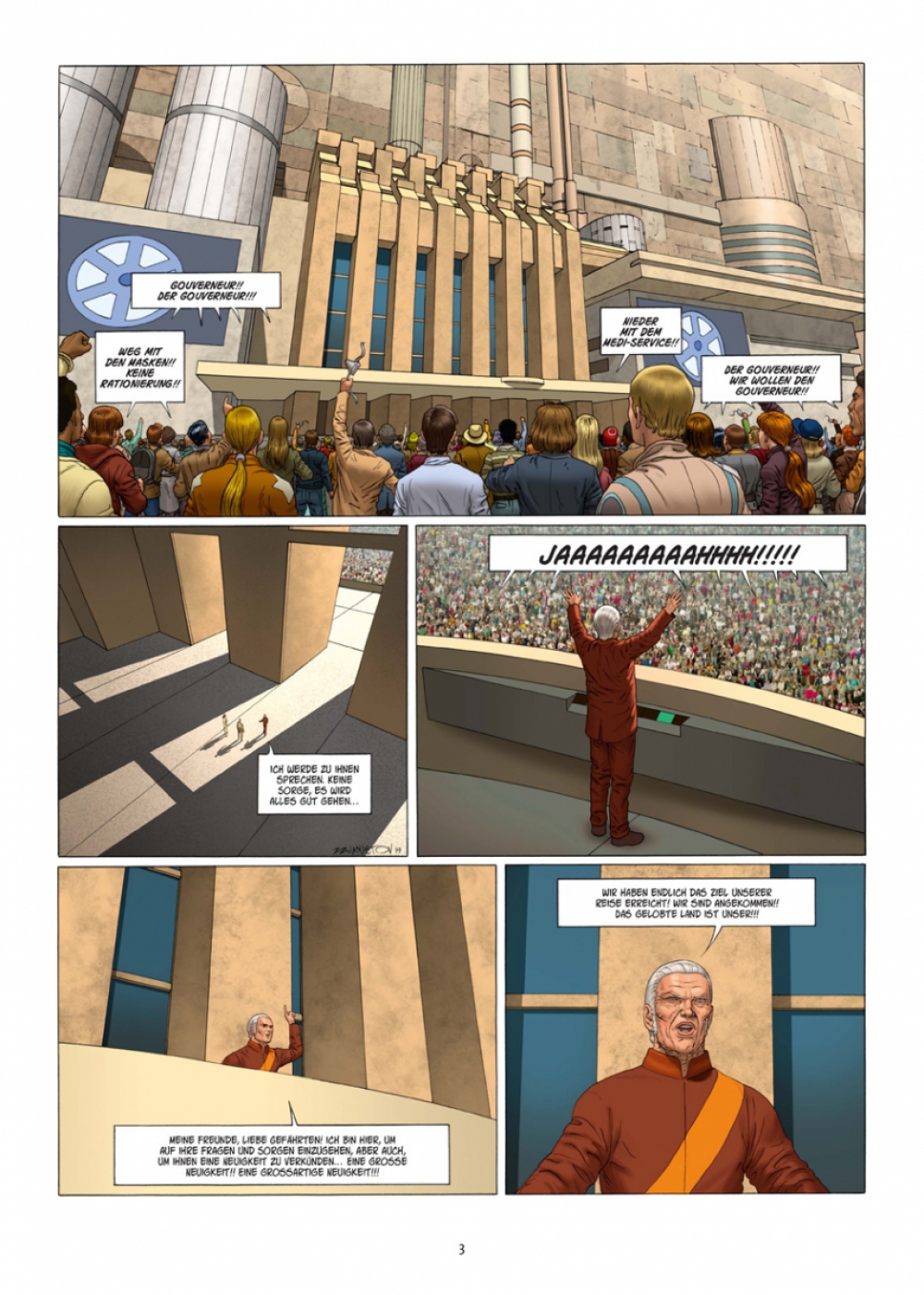 Nach über vierhundertjähriger Reise durch das All endlich am Ziel! Vor zwanzig Generationen verließ das riesige »Weltenschiff« eine dem Untergang geweihte Erde. Seine Mission: einen Planeten zu finden, der das Überleben der letzten Abkömmlinge der Menschheit sichern würde. Ein erster Erkundungstrupp wird ausgesandt, verliert aber bald den Kontakt zum Mutterschiff. Und ist nun, auf sich allein gestellt, einer Umgebung ausgesetzt, die Assoziationen zu »Jurassic Park« weckt... »Centaurus« erinnert nicht von ungefähr an exotische SF-Welten à la »Aldebaran«, denn deren Schöpfer Leo zeichnet auch für Centaurus verantwortlich. Die Zeichnungen stammen diesmal von Zoran Janjetov, (»Vor dem Incal«). Das Ergebnis: klare, klassische Science Fiction, die das Abenteuer der Entdeckung einer neuen Welt zelebriert.