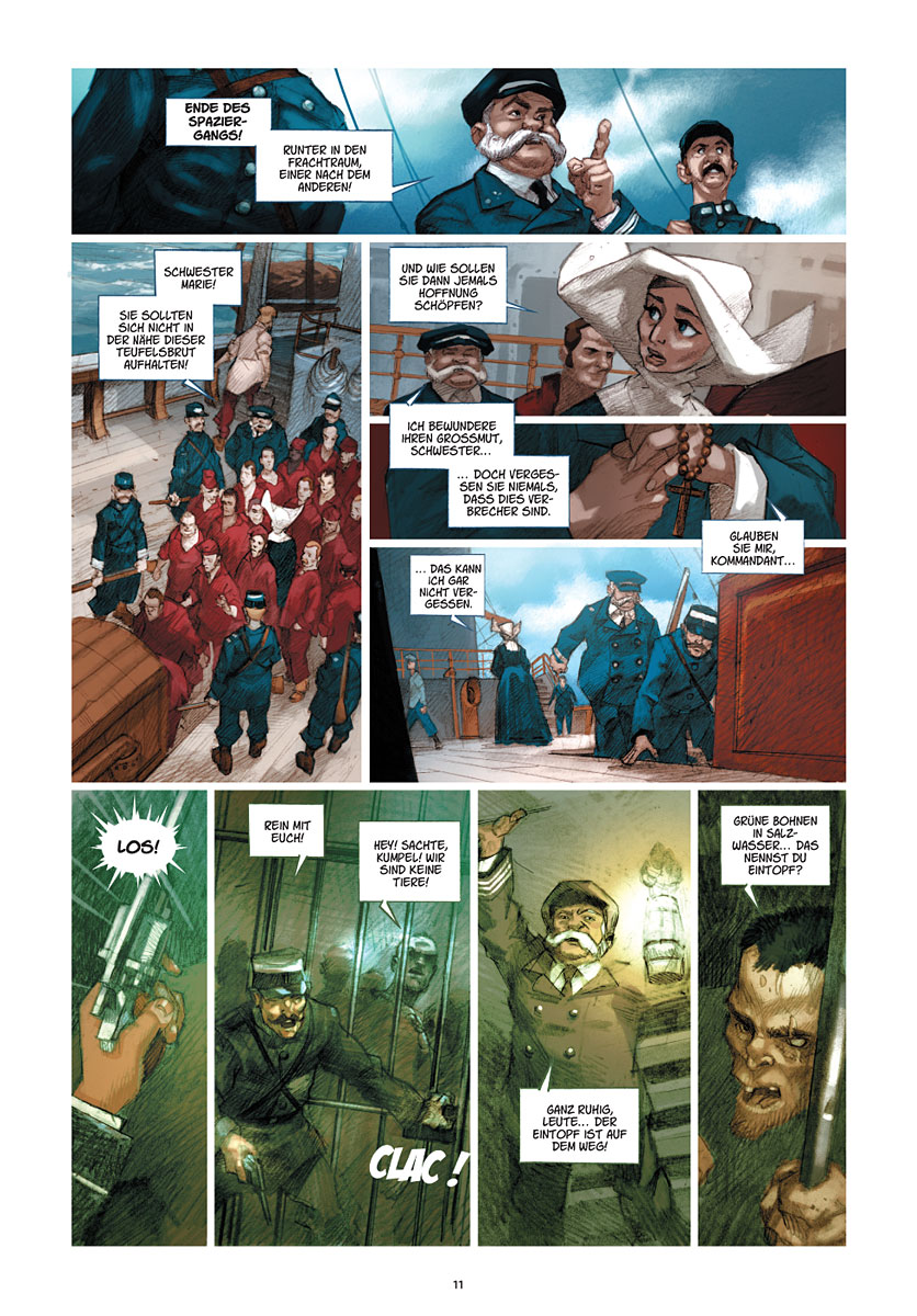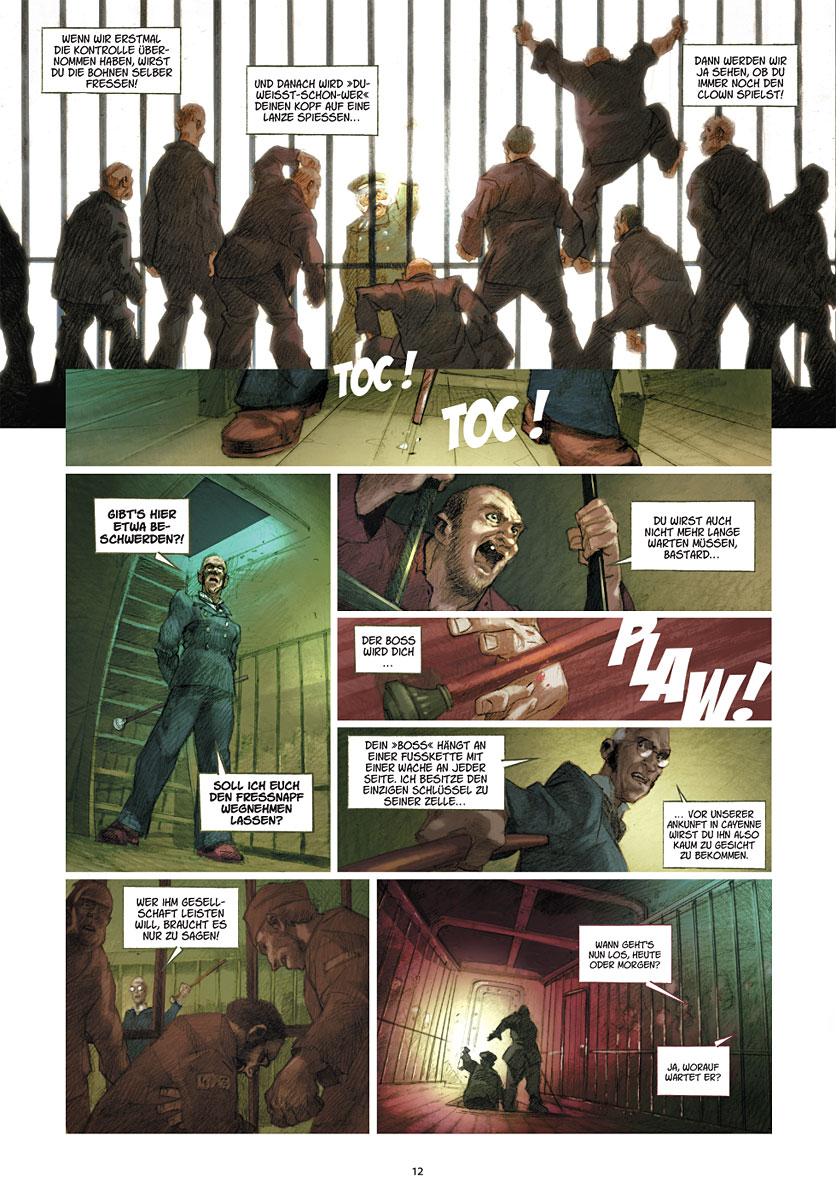 Anfang des 20. Jahrhunderts. Auf einem Schiff, das verurteilte Sträflinge nach Cayenne, Französisch-Guayana, transportiert, braut sich ein Aufstand zusammen.