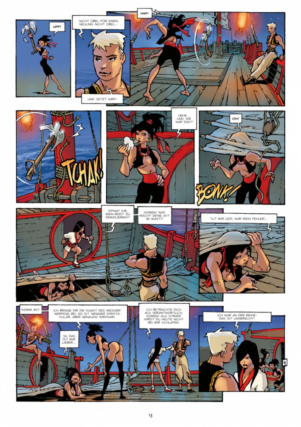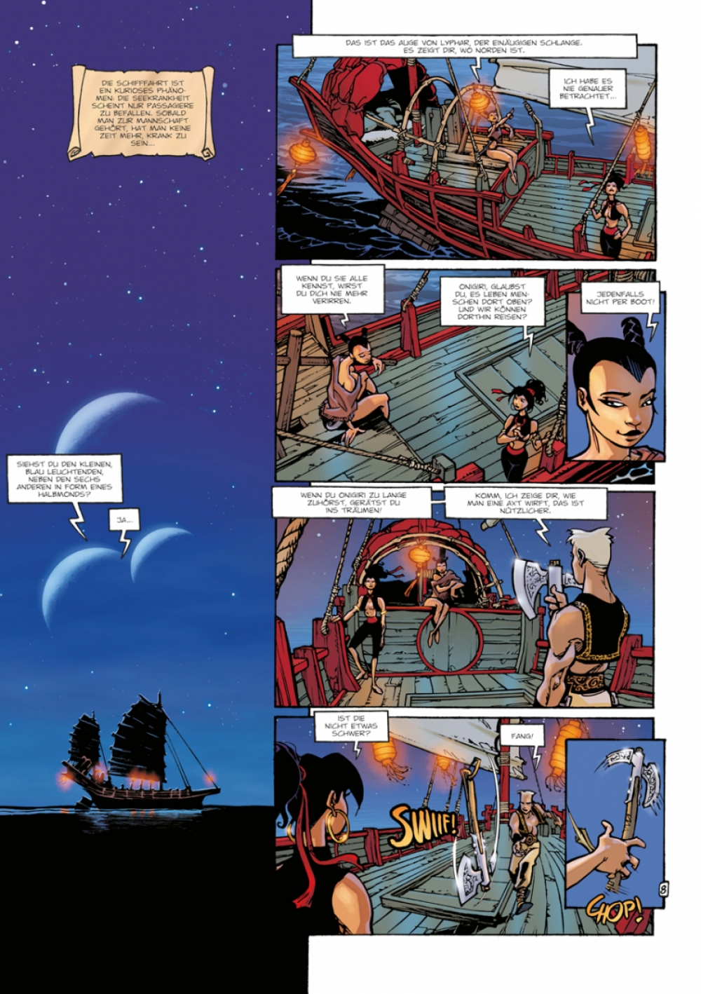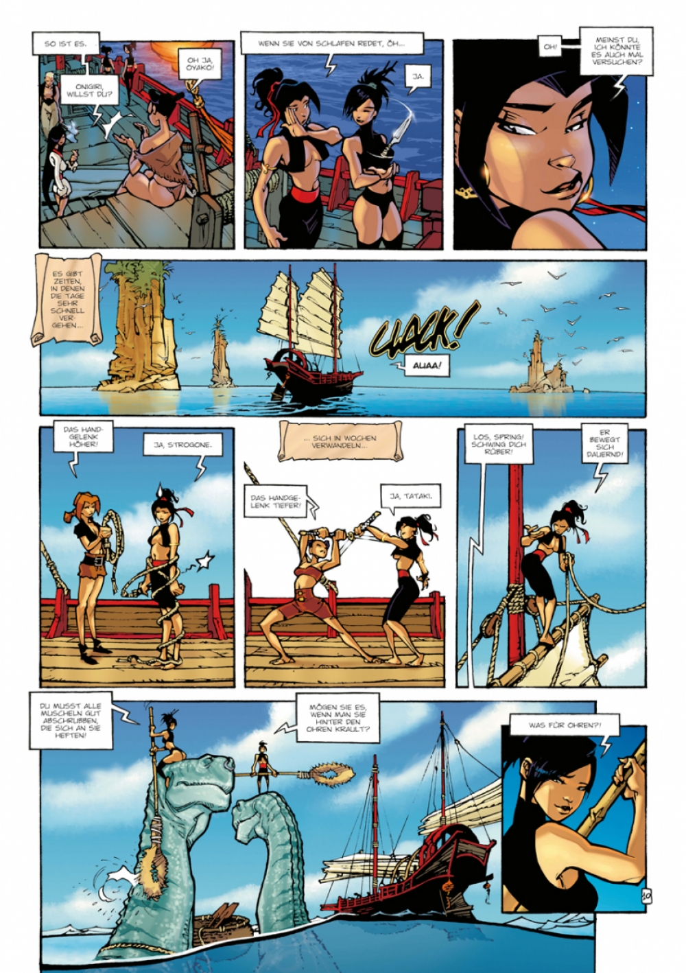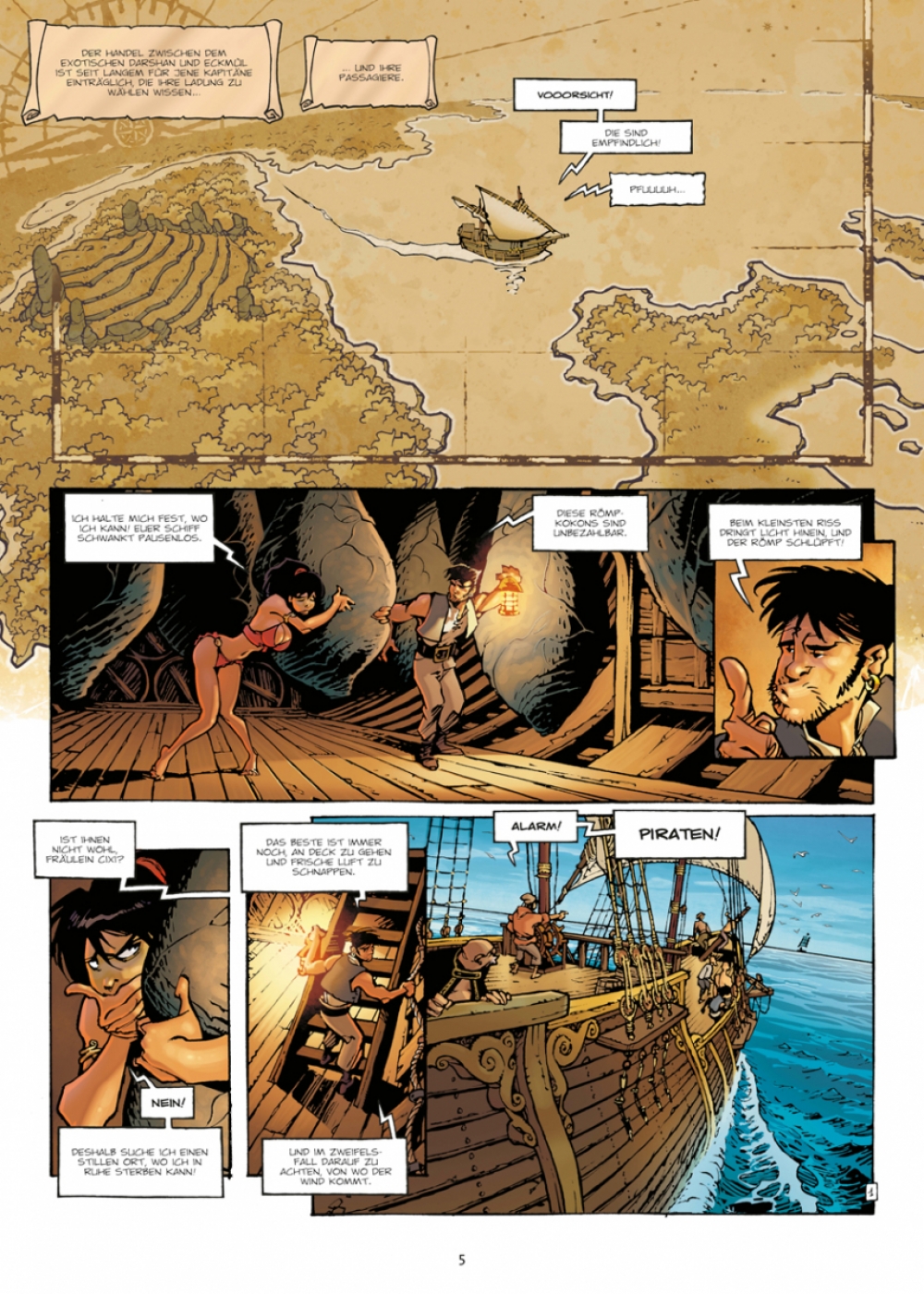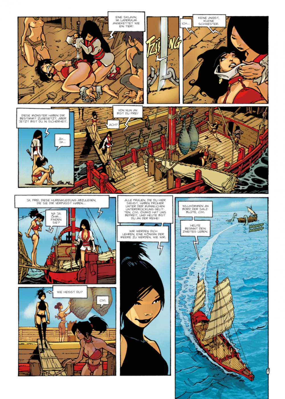 "Nach ihrem extravaganten Abschied aus dem Palast von Xingdu (am Ende von »Lanfeust von Troy« Band 5) kehrt die forsche Cixi nach Eckmül zurück. Nachdem der Pirat Thanos die Macht an sich gerissen hat, ist die Hauptstadt von Troy jedoch nicht mehr das, was sie mal war. Und als Lanfeust das nächste Mal auf Cixi trifft, ist auch sie nicht mehr das freche Mädchen von einst: Tagsüber ist sie die Geliebte von Thanos, nur um nachts zur Widerstandskämpferin gegen seine Herrschaft zu werden.