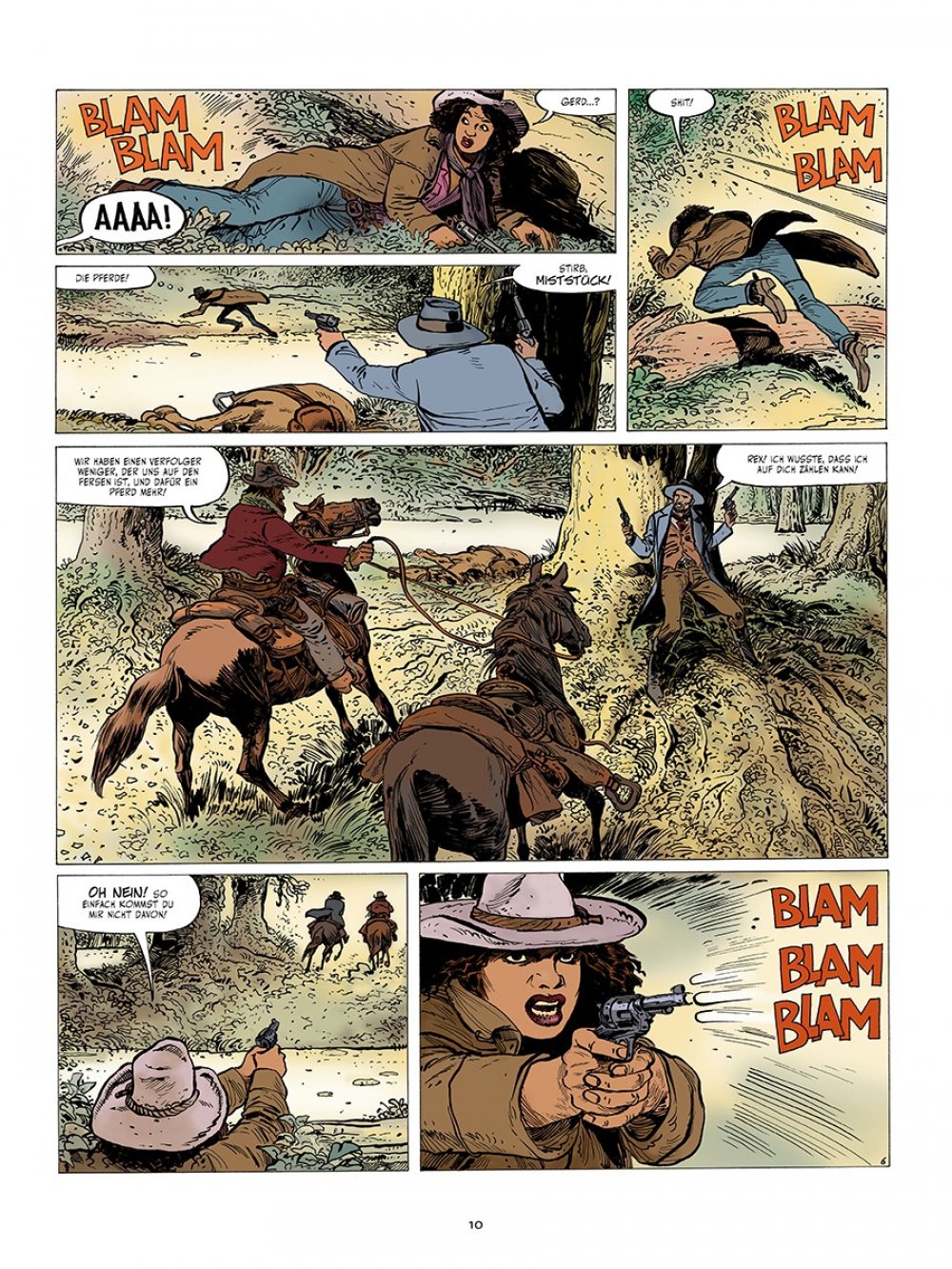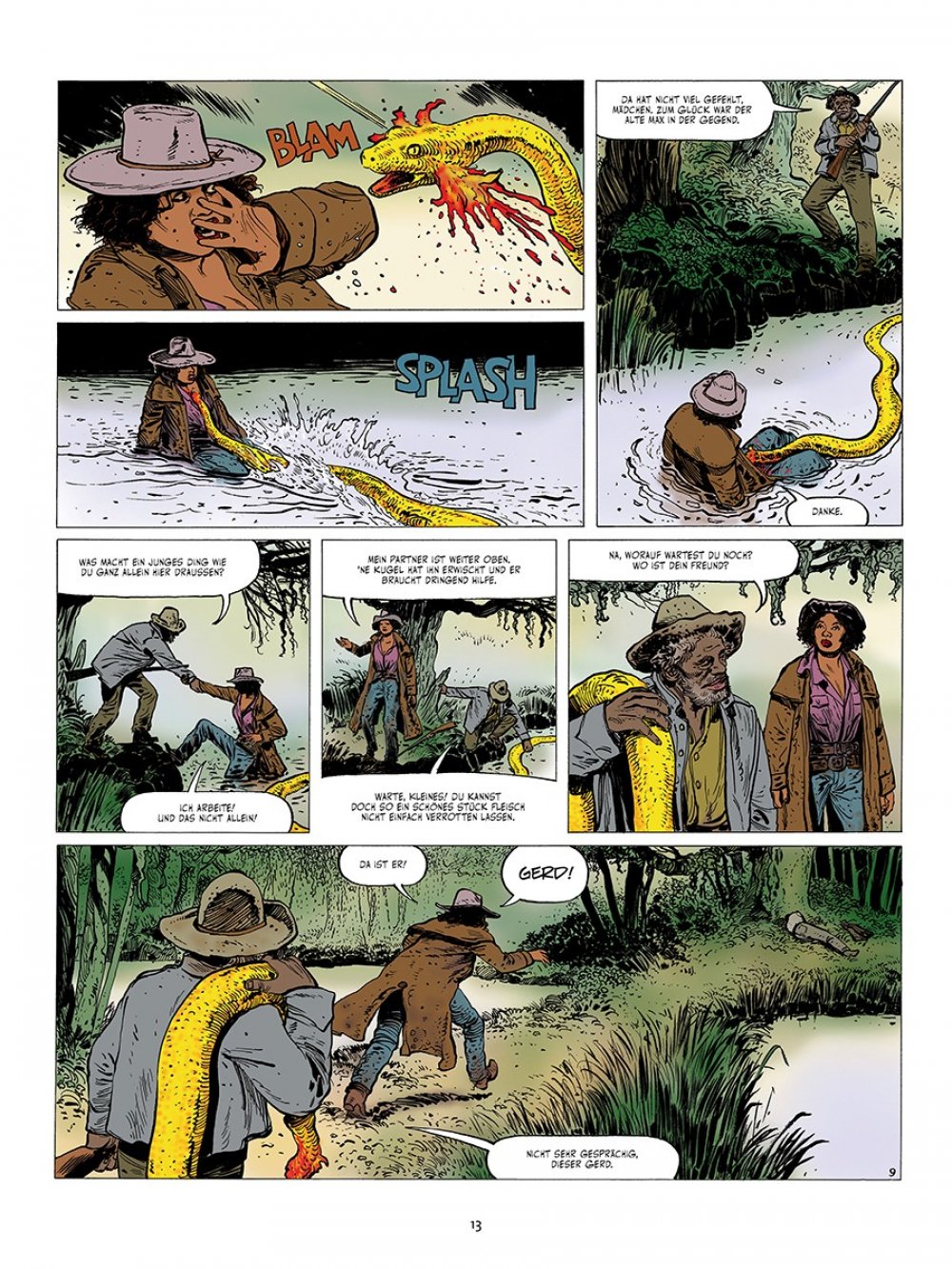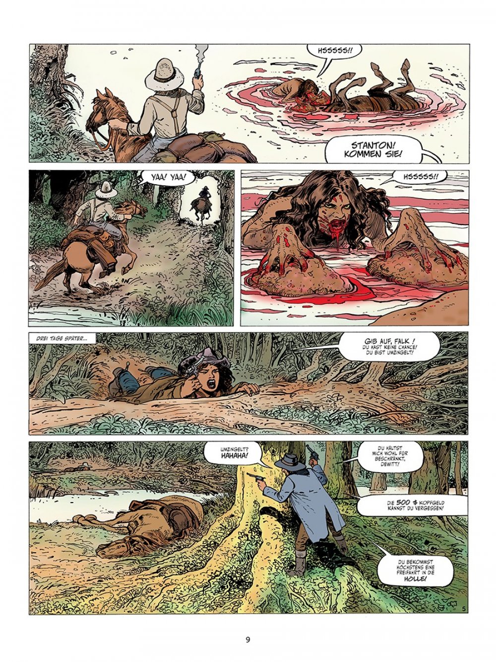 »Claire Dewitt« (nicht zu verwechseln mit der gleichnamigen Detektivin von Sara Gran, »der besten – und teuersten – Ermittlerin der Welt«) ist ein konsequenter, kompromissloser und klaustrophobischer Horrorwestern. Die beiden niederländischen Routiniers Willem Ritstier (Text) und Fred de Heij (Zeichnungen) verstehen sich meisterlich auf eine verstörende Grundstimmung und abrupte Schockmomente, sodass man sich nie sicher sein kann, ob einen nicht im nächsten Moment hinterrücks das Grauen überfällt. Nervöse Anspannung von der ersten bis zur letzten Seite garntiert.