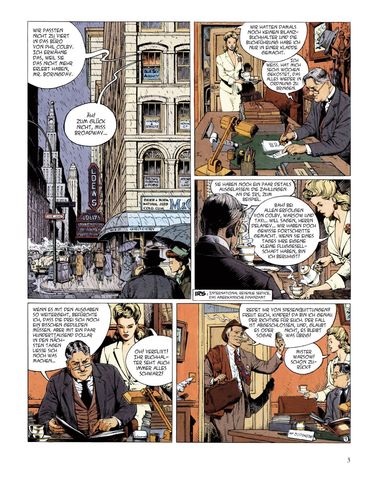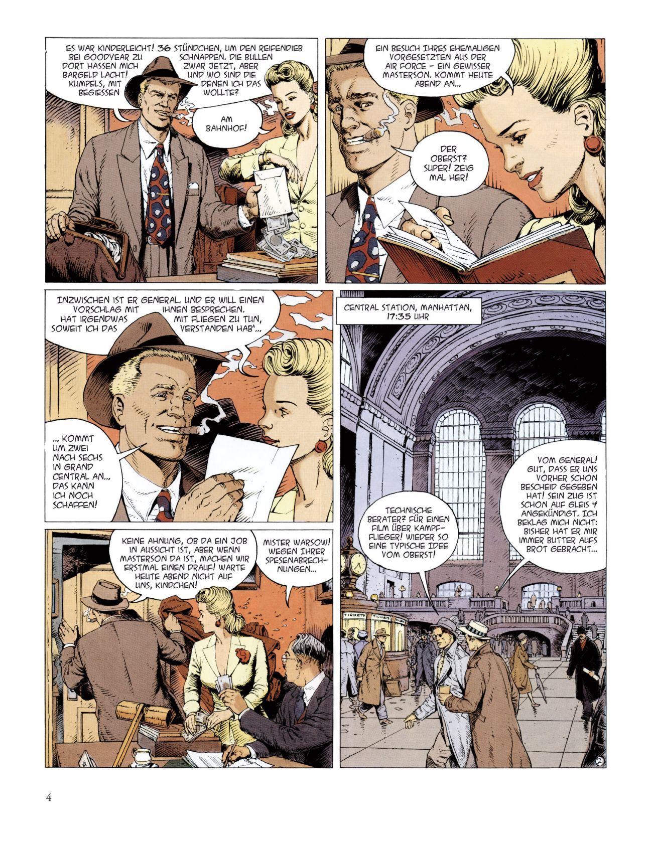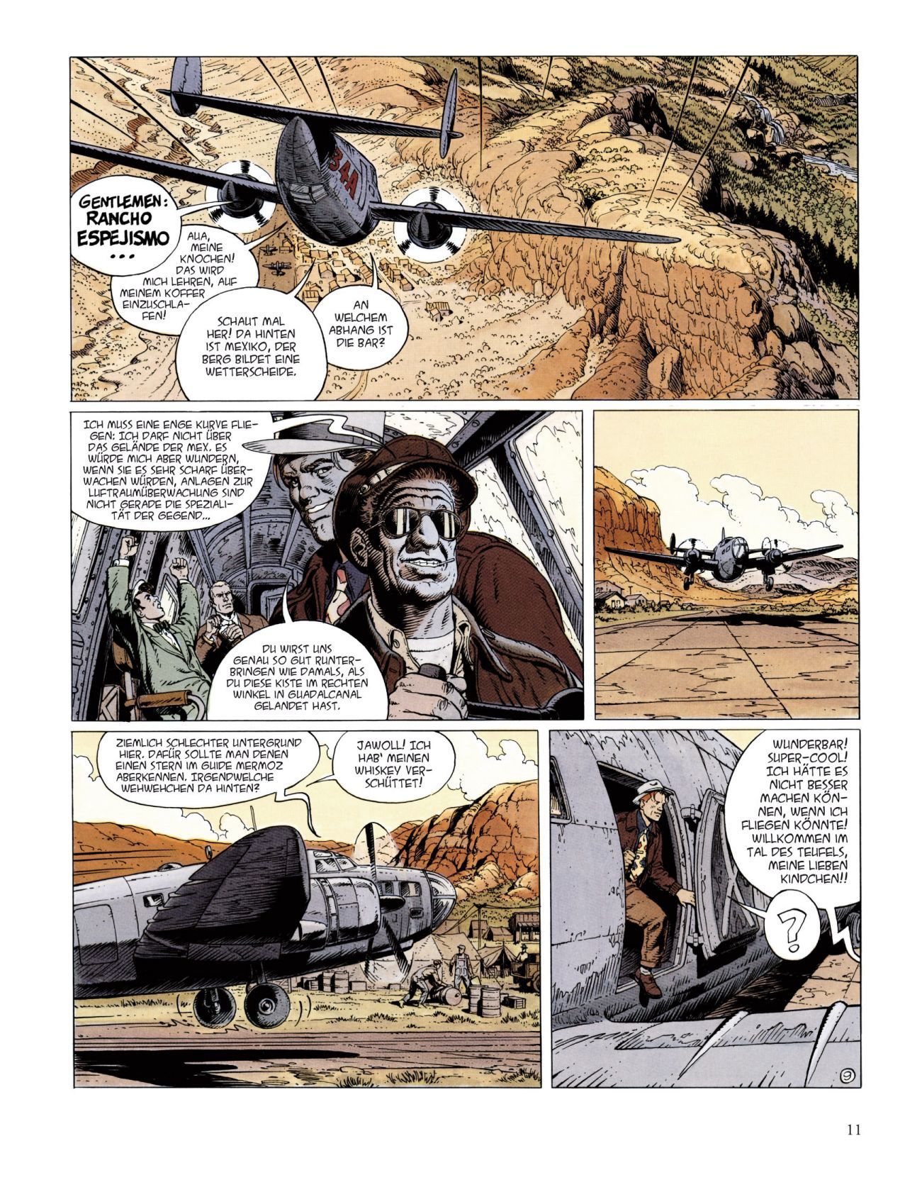 In diesem klassischen Fliegercomic verbindet Szenarist Greg eine Abenteuergeschichte mit Elementen des Hardboiled-Krimi zu einer klassisch spannenden Mischung, die auch eine Hommage an die Filme und Helden der schwarz-goldenen Fünfziger darstellt.