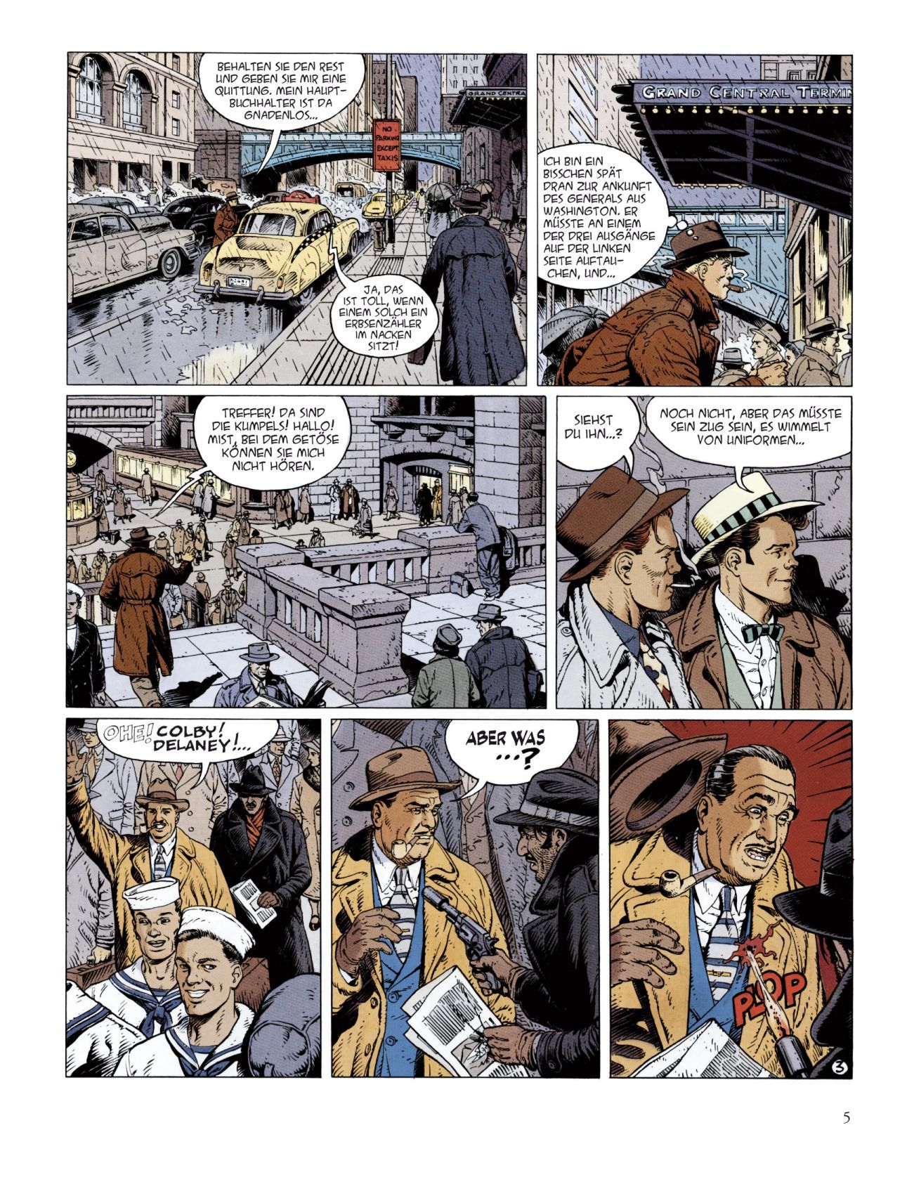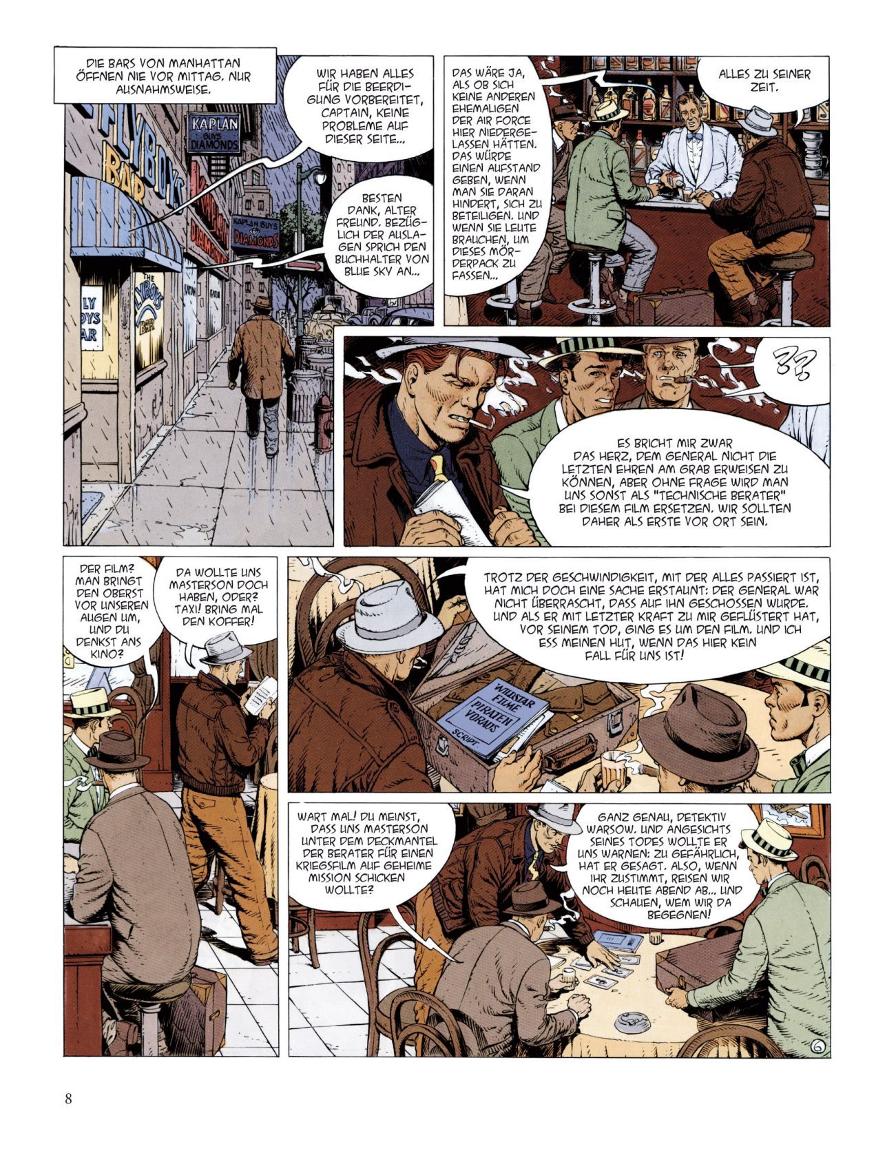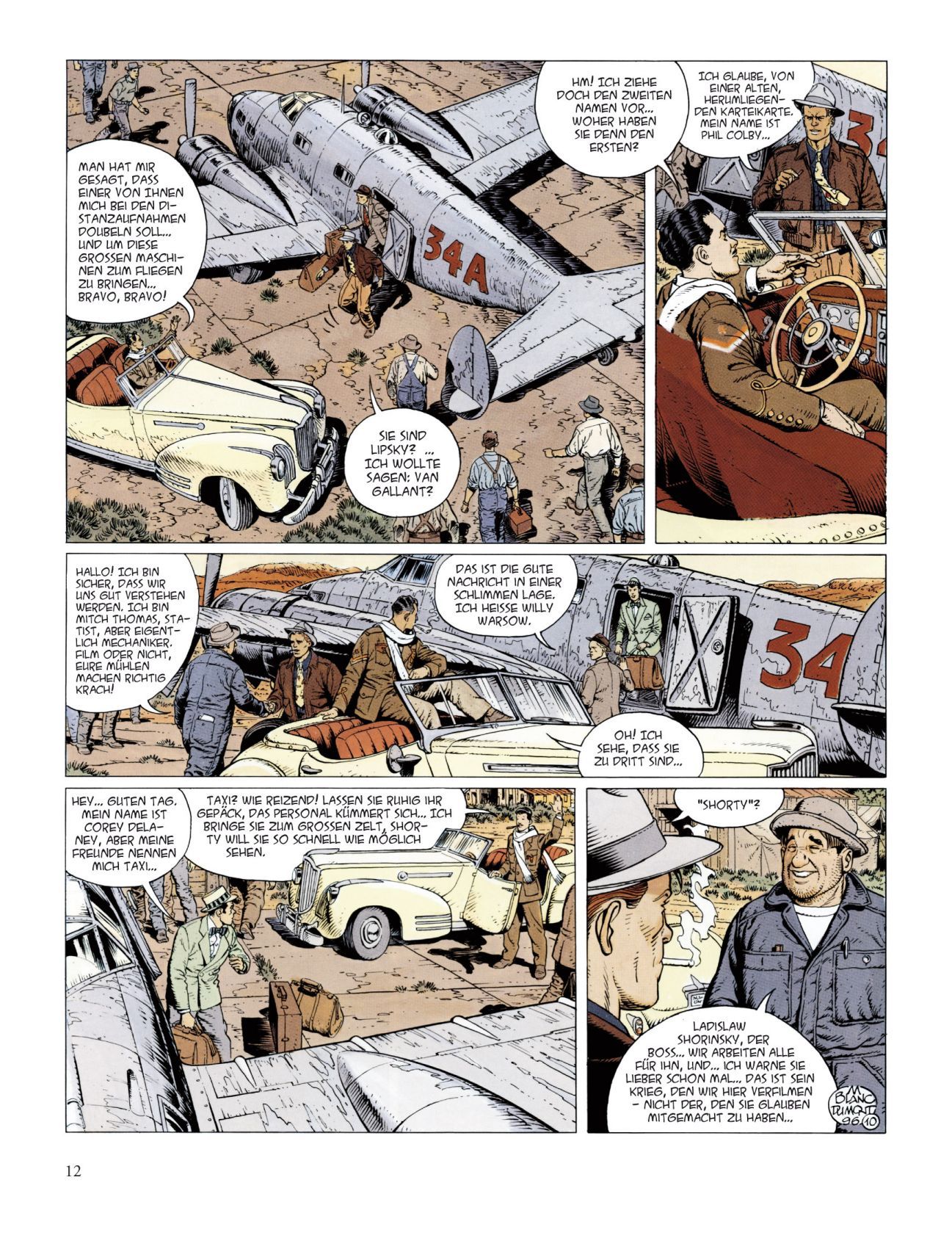 In diesem klassischen Fliegercomic verbindet Szenarist Greg eine Abenteuergeschichte mit Elementen des Hardboiled-Krimi zu einer klassisch spannenden Mischung, die auch eine Hommage an die Filme und Helden der schwarz-goldenen Fünfziger darstellt.