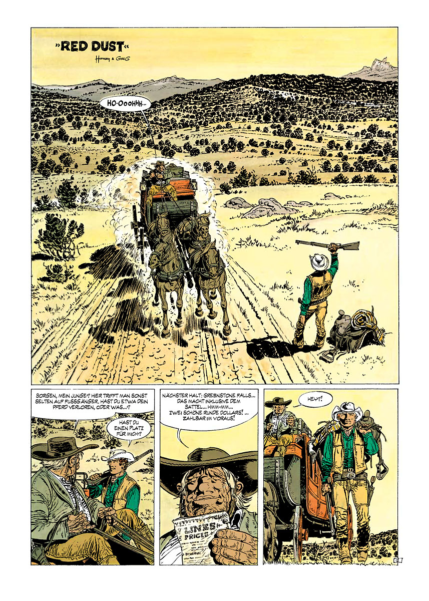 Wir legen die gesamte zehnbändige Ära dieses kongenialen Teams neu auf – inklusive Klassiker wie »Red Dust« oder »Die Wölfe von Wyoming« – und integrieren zudem noch eine große Anzahl an Skizzen und Illustrationen, die in Deutschland bisher nicht veröffentlicht wurden. Die zehnbändige Serie umfasst außerdem alle Kurzgeschichten und beinhaltet auf jeden Fall auch die verloren gegangenen Seiten zu »Roter Himmel über Laramie«. Das Warten der letzten 30 Jahre hat endlich ein Ende!