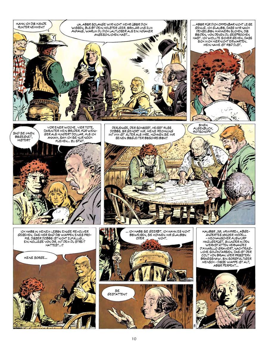 Wir legen die gesamte zehnbändige Ära dieses kongenialen Teams neu auf – inklusive Klassiker wie »Red Dust« oder »Die Wölfe von Wyoming« – und integrieren zudem noch eine große Anzahl an Skizzen und Illustrationen, die in Deutschland bisher nicht veröffentlicht wurden. Die zehnbändige Serie umfasst außerdem alle Kurzgeschichten und beinhaltet auf jeden Fall auch die verloren gegangenen Seiten zu »Roter Himmel über Laramie«. Das Warten der letzten 30 Jahre hat endlich ein Ende!