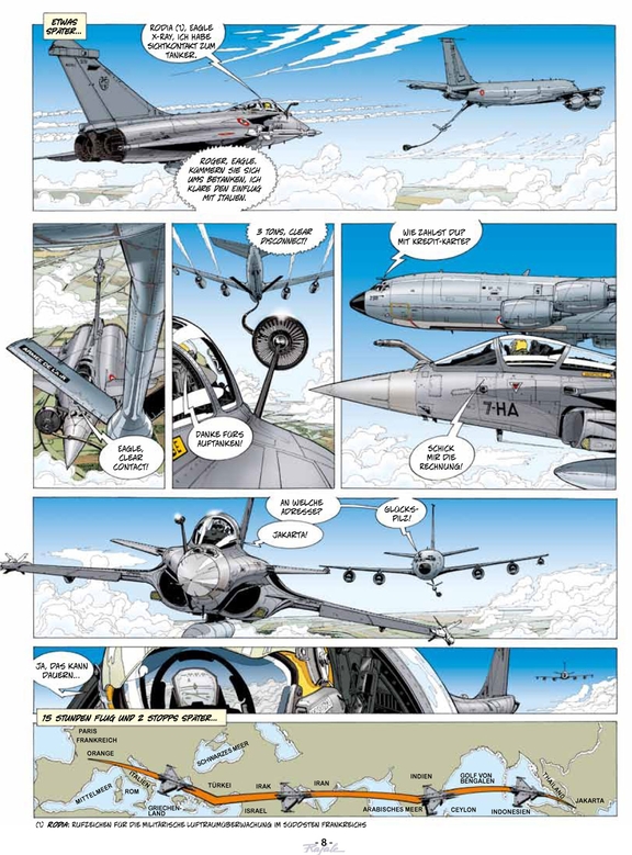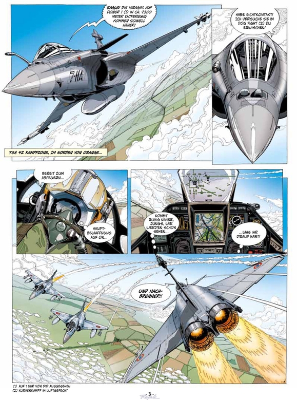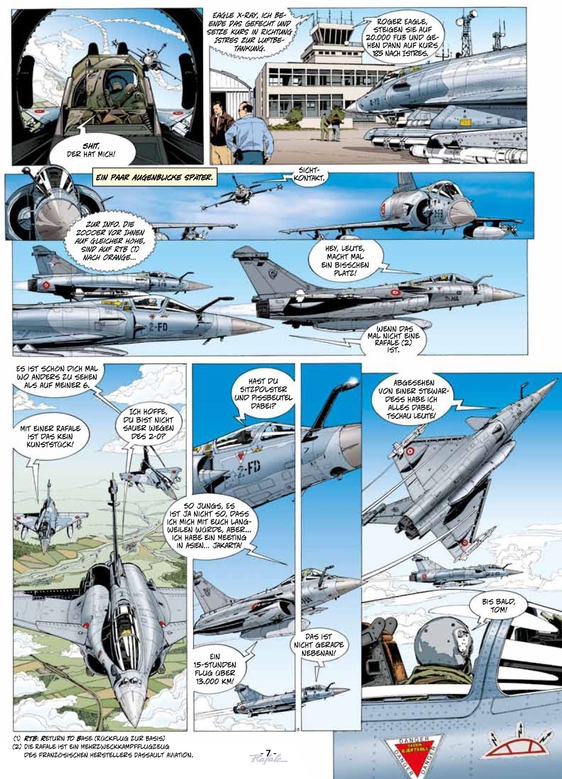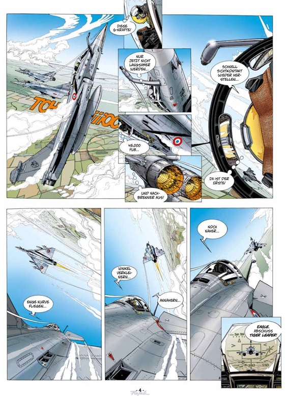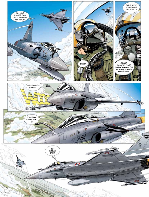 TEAM RAFALE ist eine Serie über zeitgenössische, militärische Flugabenteuer. Held und Heldin sind die Kampfpiloten Hauptmann Tom Nolane und Hauptmann Jessica Nate.