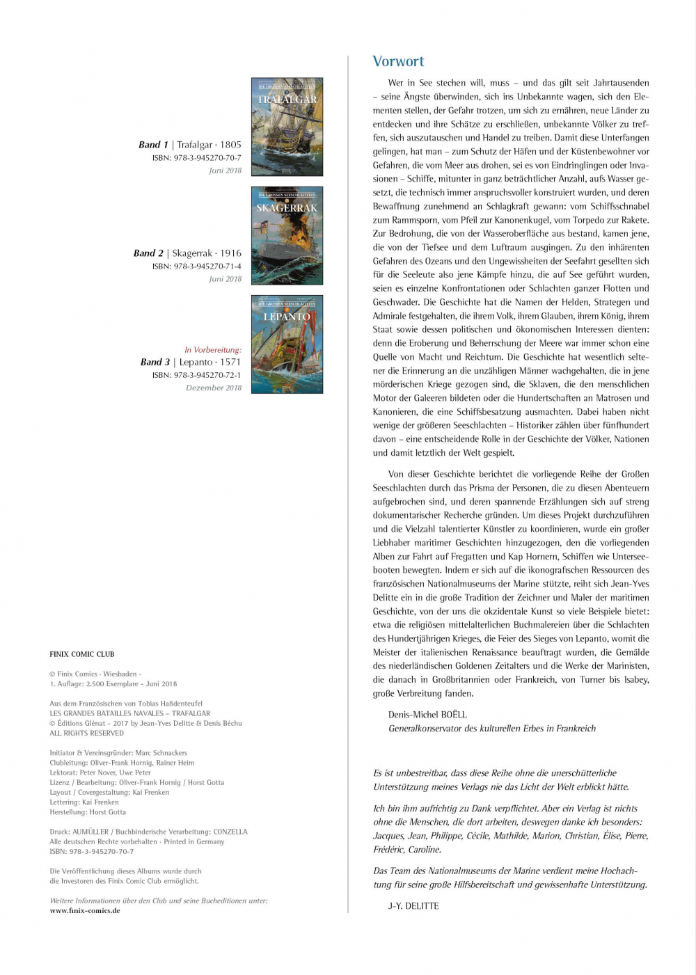 Die Serie, ins Leben gerufen vom Seefahrt-Experten Jean-Yves Delitte (Black Crow, Neptune) läuft im Original unter dem Titel „Les Grandes Batailles Navales“. In loser Reihenfolge schildet jedes Album die historischen Ereignisse berühmter Seeschlachten.