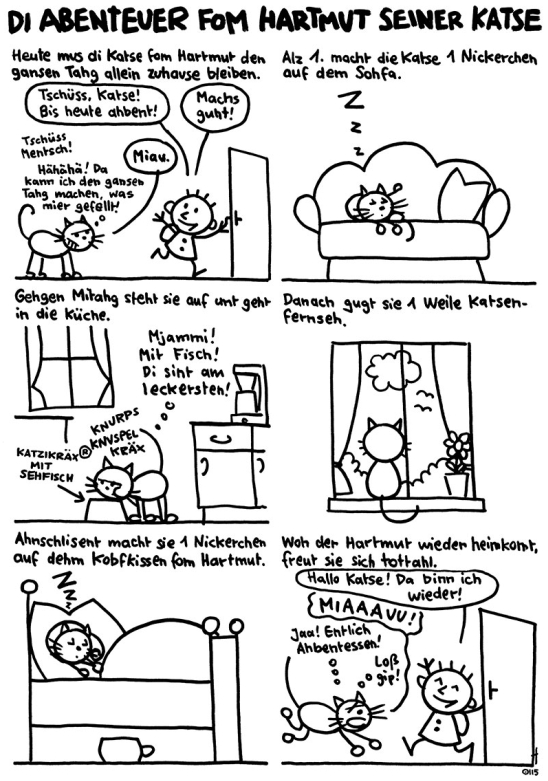 Hurra! Neue Abenteuer vom Hartmut, mit der bekannt-bewährten, ganz eigenen Orthografie! Erlebt den Hartmut wie er Schmähgedichte macht, mit Monstern ein Getränk trinkt und in vielen weiteren Abenteuern!