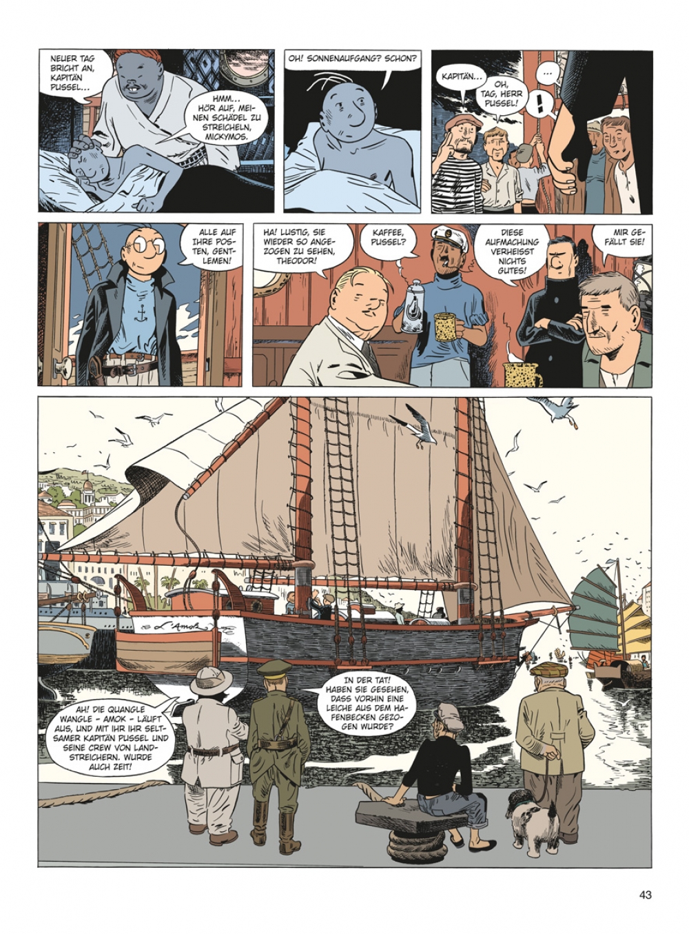 Theodor Pussel und November sind in Singapur gestrandet und nur noch Schatten ihrer selbst. Doch dann besorgen sie sich Geld, eine hartgesottene Mannschaft und ein Schiff, das sie »Amok« taufen. Die Fahrt geht zurück zu ihrer Insel, die ihnen genommen wurde, um sich diese mit Gewalt zurückzuholen ...