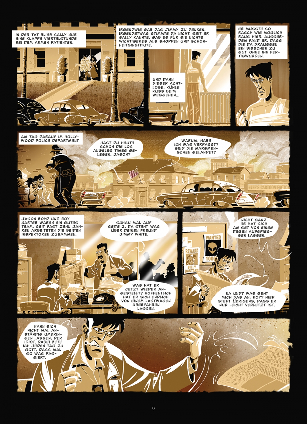 Sommer 1957 Disney-Studios in Los Angeles. Jimmy White, der ewige Zweite-Geige-Spieler, hat diverse Einsätze als Stuntman, Double, Statist in einer nicht gerade anspruchsvollen Serie mit dem Titel „Zorro“. Er ist nicht happy, und auch privat läuft es nicht rund. Obendrein wird er noch des Mordes an seiner Freundin verdächtigt! Gut, dass er in Brenda eine tatkräftige Agentin hat, die immer einen Ausweg weiß…