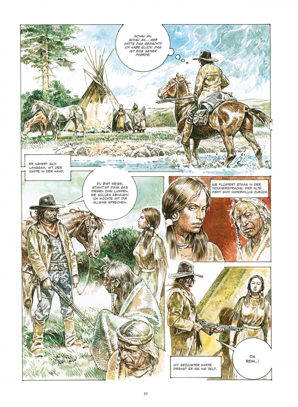 Mit seinem dynamischen und zugleich sensiblen Strich zeichnet Serpieri diese Hommage an eine verlorene Zeit mit ihren einfachen, aber harten Regeln, mit ihrer Freiheit und der Nähe zur Natur.