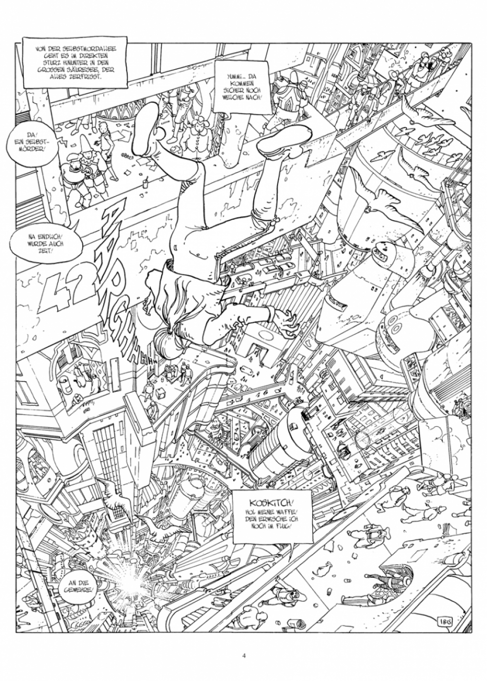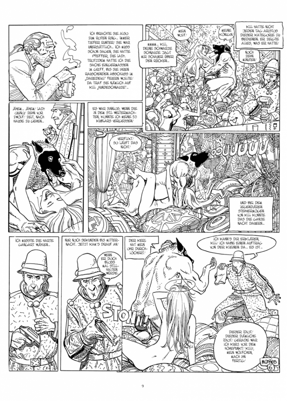 Nachdem Moebius Mitte der 1970er im Magazin Métal Hurlant mit luftigen SF-Storys die Welt der Comics auf links gekrempelt hatte, legte er, gemeinsam mit dem visionären Autor Jodorowsky, in den 80ern mit dem Incal-Zyklus ein legendäres Meisterwerk vor. Die Geschichte des John Difool und seines Betonvogels Dipo, die in eine Verschwörung von galaktischen Dimensionen verwickelt werden, wurde praktisch aus dem Stand zum Klassiker.
